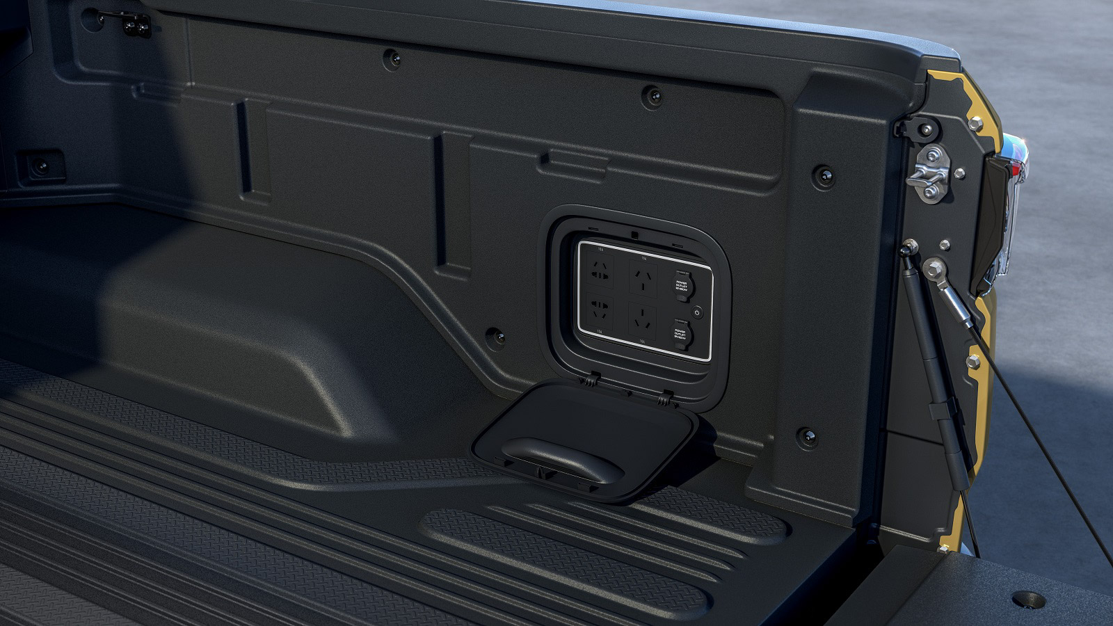 ในส่วนของกระบะท้าย มีพอร์ตชาร์จ 10A จำนวน 2 พอร์ต, 16A จำนวน 2 พอร์ต และ Power Outlet 12V 120W จำนวน 2 พอร์ต และรองรับฟังก์ชัน V2L ที่มีกำลังไฟ 2,000W