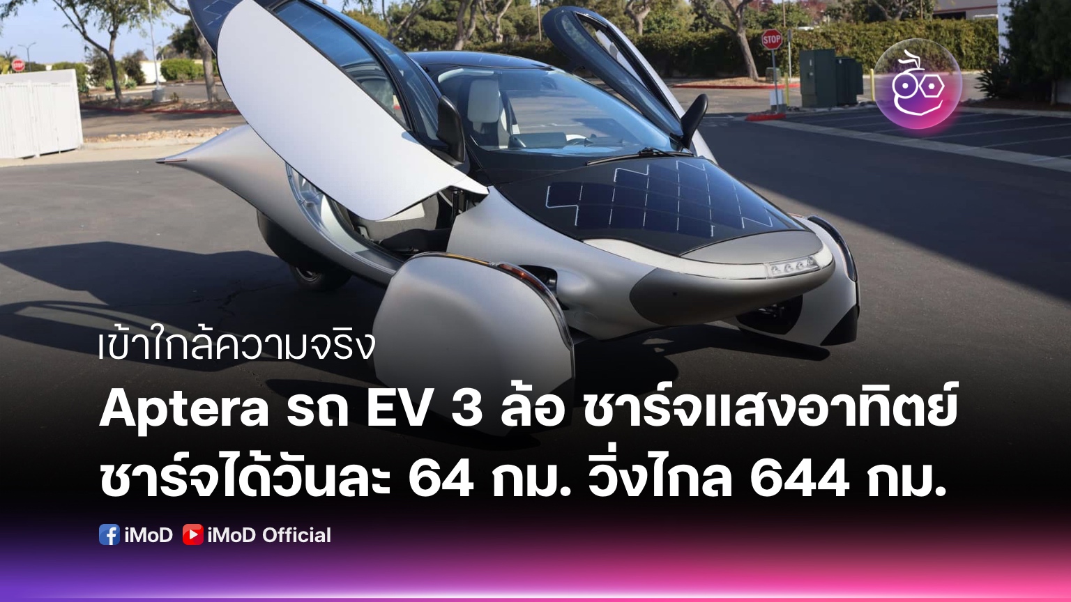 Aptera รถ 3 ล้อ ไฟฟ้าพลังงานแสงอาทิตย์ ชาร์จได้ 64 กม./วัน วิ่งไกล 644 กม. กำลังเข้าสู่การผลิตจริงแล้ว