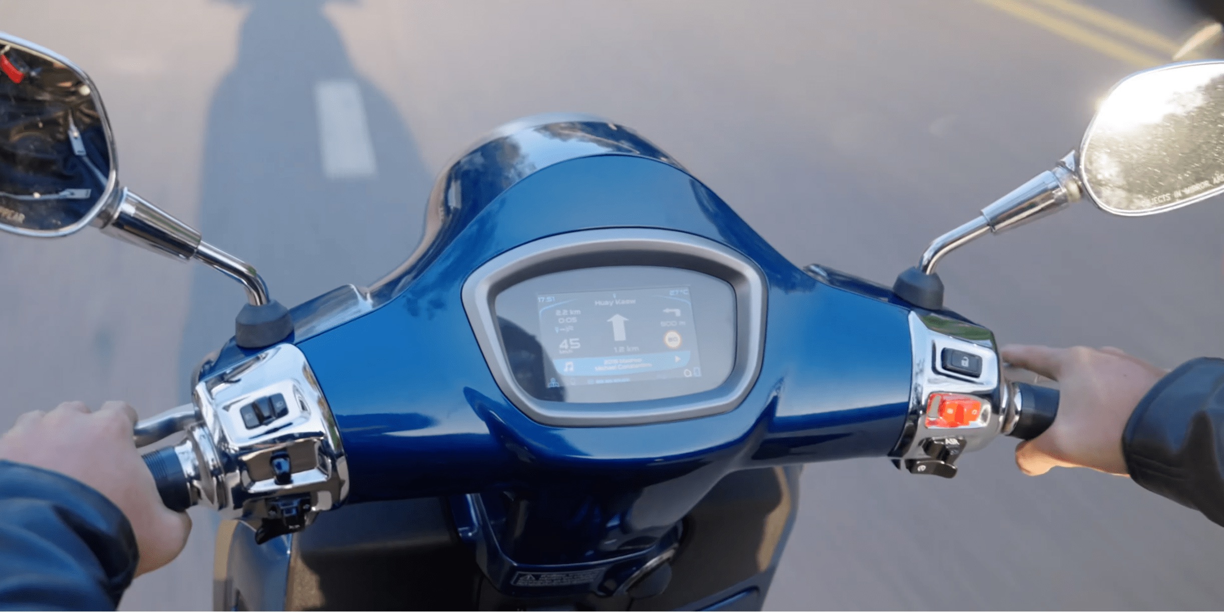 ไฮไลท์เลยคือเชื่อมต่อแอป Vespa ได้ ทั้งทางฝั่งของ iOS และ Android สามารถใช้ดูรายละเอียดของตัวรถได้ เหมือนกับแอปพลิเคชันของรถยนต์ไฟฟ้า สามารถใช้งานร่วมกับแอปพลิเคชันแผนที่สำหรับการนำทางได้