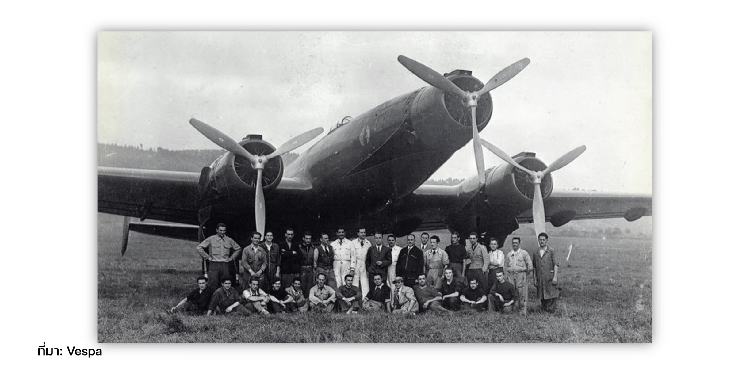 ต่อมาในตระกูลนี้ ได้ให้วิศวกรออกแบบสกู๊ตเตอร์ต้นแบบขึ้น ซึ่งมีลักษณะที่คล้ายกับรูปทรงของตัวต่อ ซึ่งภาษาอังกฤษนั้นใช้คำว่า Wasp หากเป็นภาษาอิตาลีจะกลายเป็นคำว่า Vespa ซึ่งคือกลายมาเป็นชื่อบรนด์ในปัจจุบันหากนับเวลามาถึงปัจจุบันแบรนด์ Vespa จะมีอายุมากว่า 77 ปีเลยทีเดียว สำหรับประเทศไทย Vespa ได้ทำการตลาดมาแล้วตั้งแต่ปี 2010