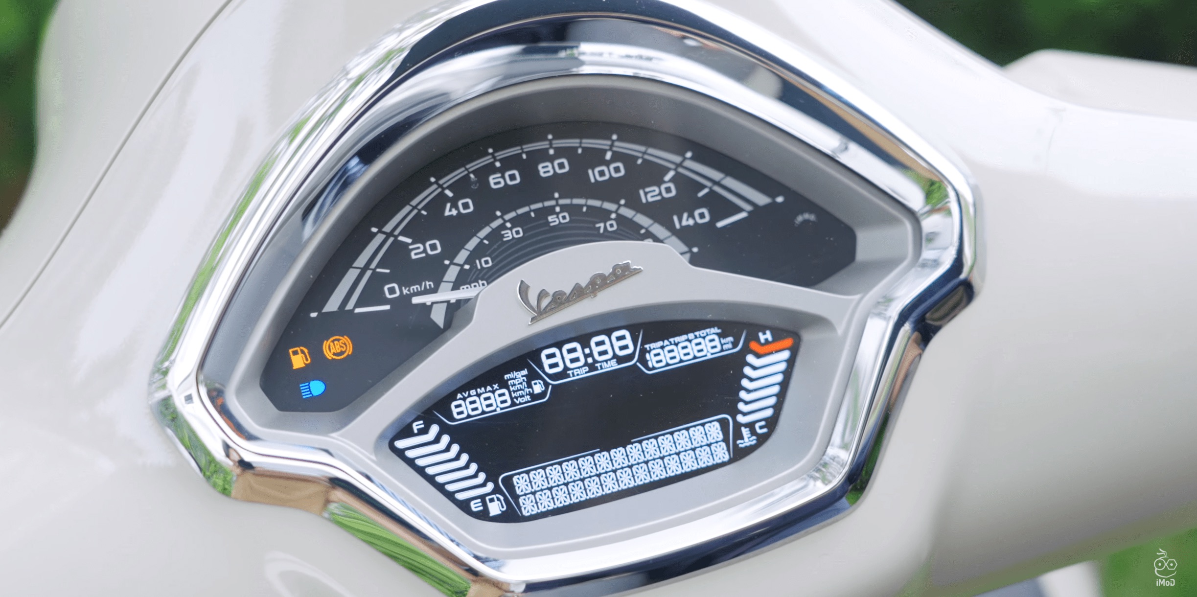 Dashboard สำหรับรุ่น Vespa GTS 2023 SUPER SPORT 150 i-Get ABS, Vespa GTS 2023 300 HPE เป็นรูปแบบอนาล็อคที่มีความทันสมัยและหรูหรามากยิ่งขึ้น