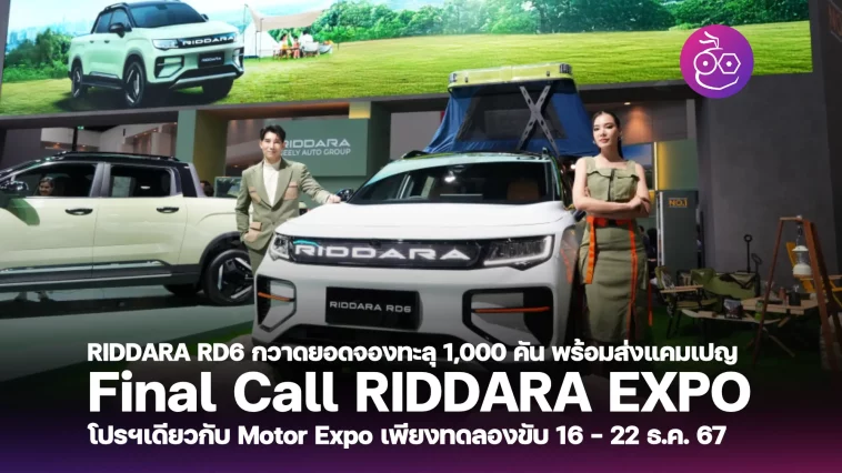 RIDDARA กวาดยอดจอง RIDDARA RD6 ทะลุ 1,000 คัน พร้อมส่งแคมเปญ Final Call RIDDARA EXPO ขยายเวลาโปรโมชันเหมือนจองใน Motor Expo สำหรับผู้ทดลองขับที่โชว์รูมทั่วประเทศ 16 – 22 ธ.ค. 2567
