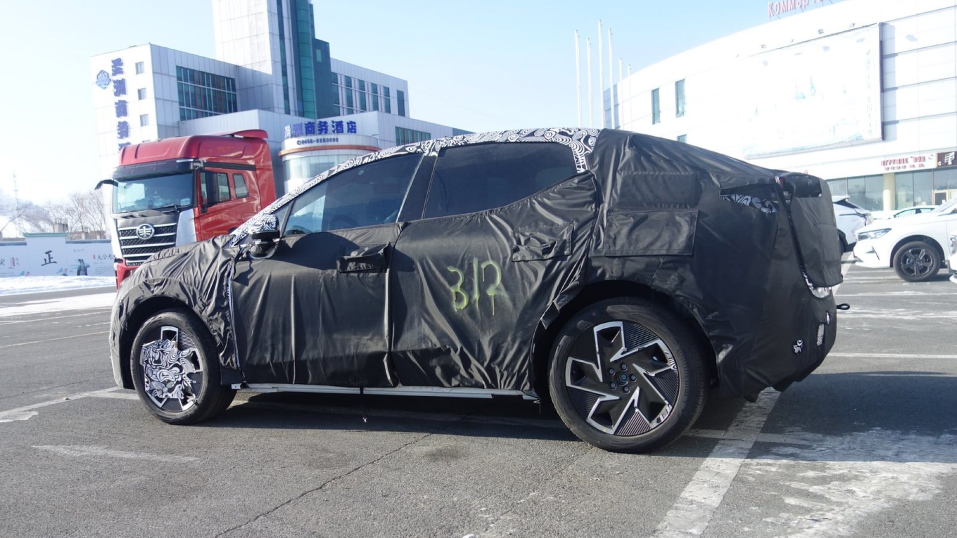จากด้านข้าง เราสามารถเห็นได้ว่าเป็นรถ SUV ทรง Fastback ขนาดเล็ก ที่มีแนวหลังคาลาดเอียงลง มาพร้อมกระจกมองข้างแบบไร้กรอบ มือจับประตูแบบซ่อนราบเรียบไปกับตัวรถ และล้ออัลลอยลาย 5 ก้าน เส้นขอบกระจกมีความคล้ายกับรถครอสโอเวอร์อย่าง Zeekr X ที่มีปุ่มกดเปิดประตูบริเวณเสา B และ Lynk & Co 02 อาจมีเวอร์ชันปุ่มกดเปิดประตูในอนาคต ก็เป็นได้ ความยาวของตัวรถประมาณ 4.4 เมตร