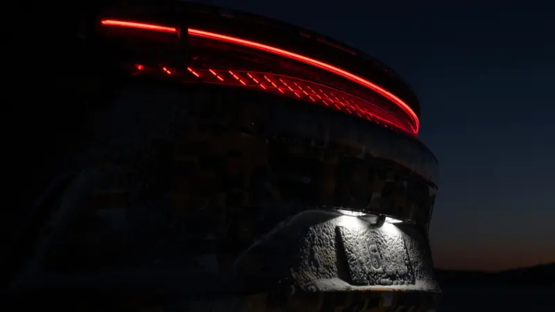จากภาพวิ่งทดสอบที่ติดสติกเกอร์พรางตัวทั้งคัน แต่ยังพอเห็นรายละเอียดที่สอดคล้องกับภาพอย่างเป็นทางการ ที่เปิดเผยไปก่อนหน้านี้ ในแง่รายละเอียดภายนอก จะเห็นเซ็นเซอร์ LiDAR ติดตั้งอยู่บนหลังคา พร้อมแผงไฟแบบโต้ตอบได้อยู่ระหว่างไฟหน้า มือเปิดประตูแบบราบเรียบไปกับตัวรถ และแนวหลังคาที่ลาดเอียงลง