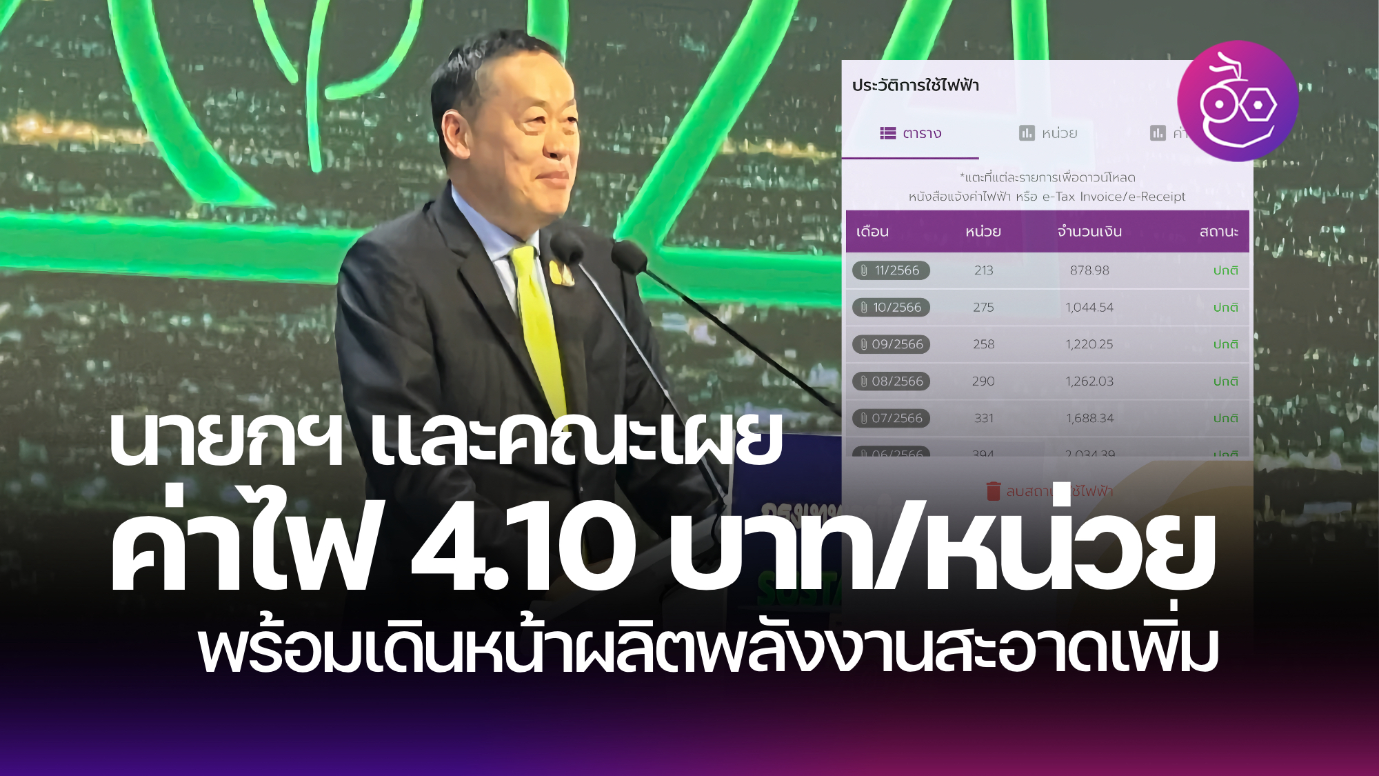 นายกเศรษฐา และคณะรัฐมนตรีเผย ค่าไฟงวดใหม่ 4.10 บาท/หน่วย และเตรียมเพิ่มพลังงานสะอาดเป็น 50% ของกำลังการผลิต