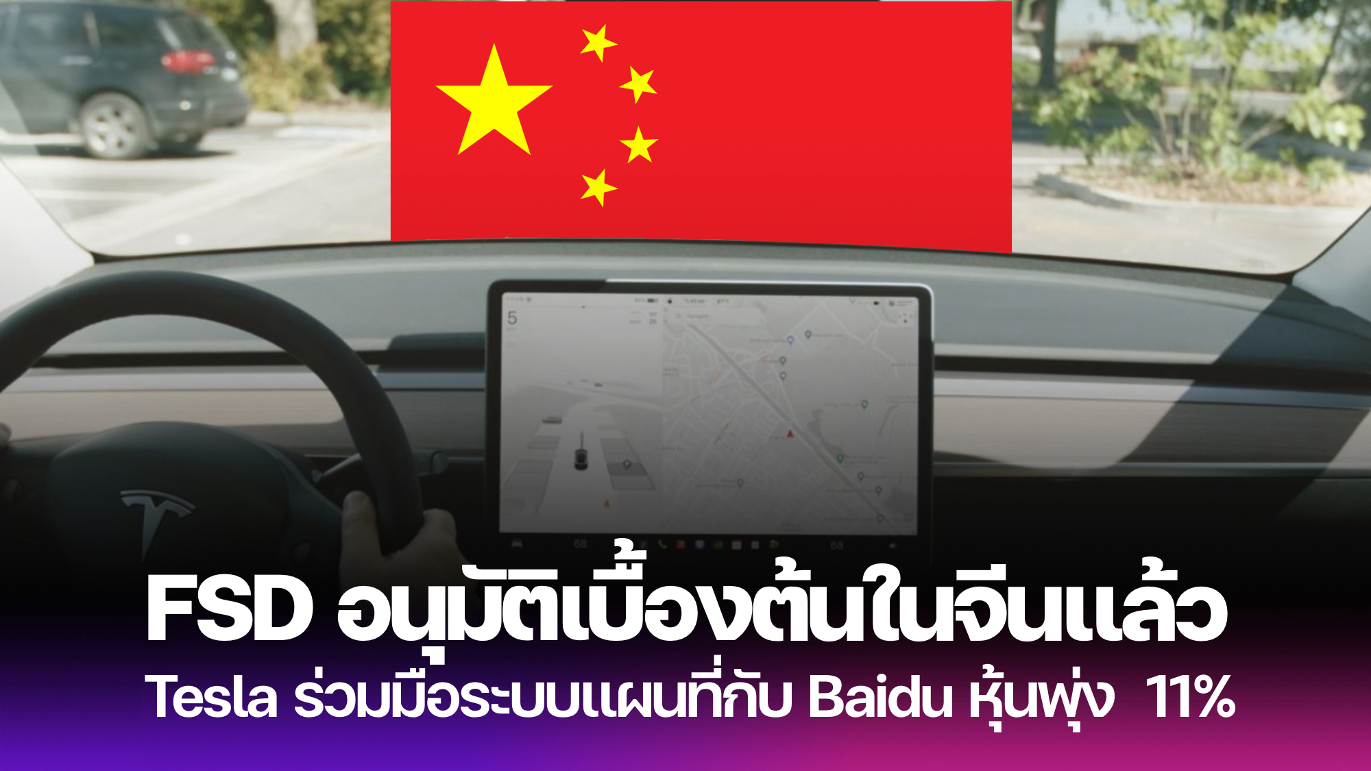รายงานเผยระบบ Full Self-Driving ได้รับการอนุมัติเบื้องต้นในจีนแล้ว ร่วมมือ Baidu ส่งผลหุ้น Tesla พุ่ง 11%