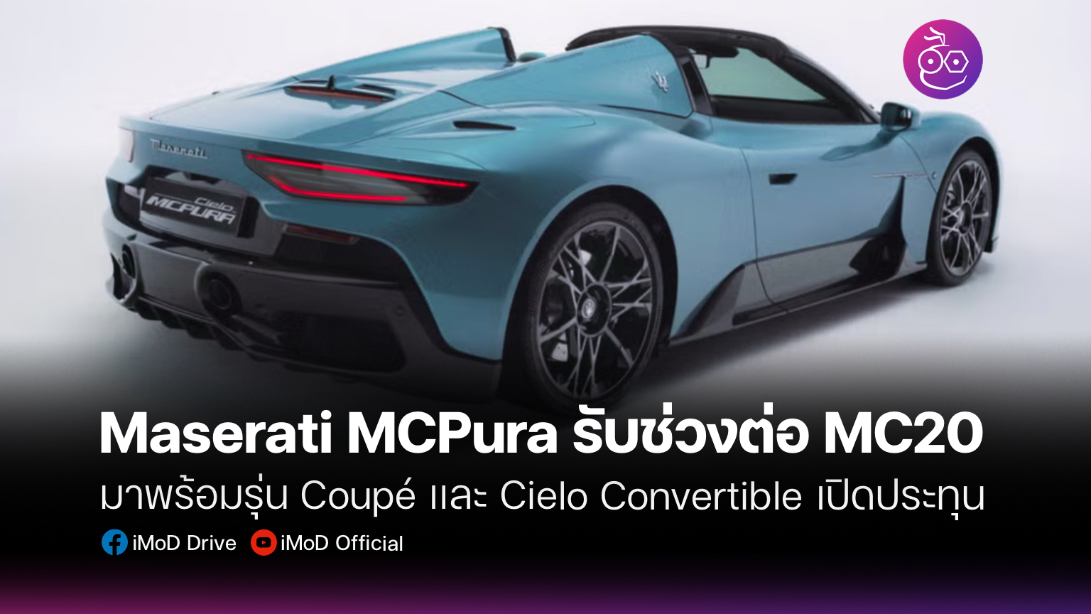 Maserati MCPura รุ่นอัปเกรดใหม่ รับช่วงแทน MC20 มาพร้อมรุ่น Coupé และ Cielo Convertible เปิดประทุน