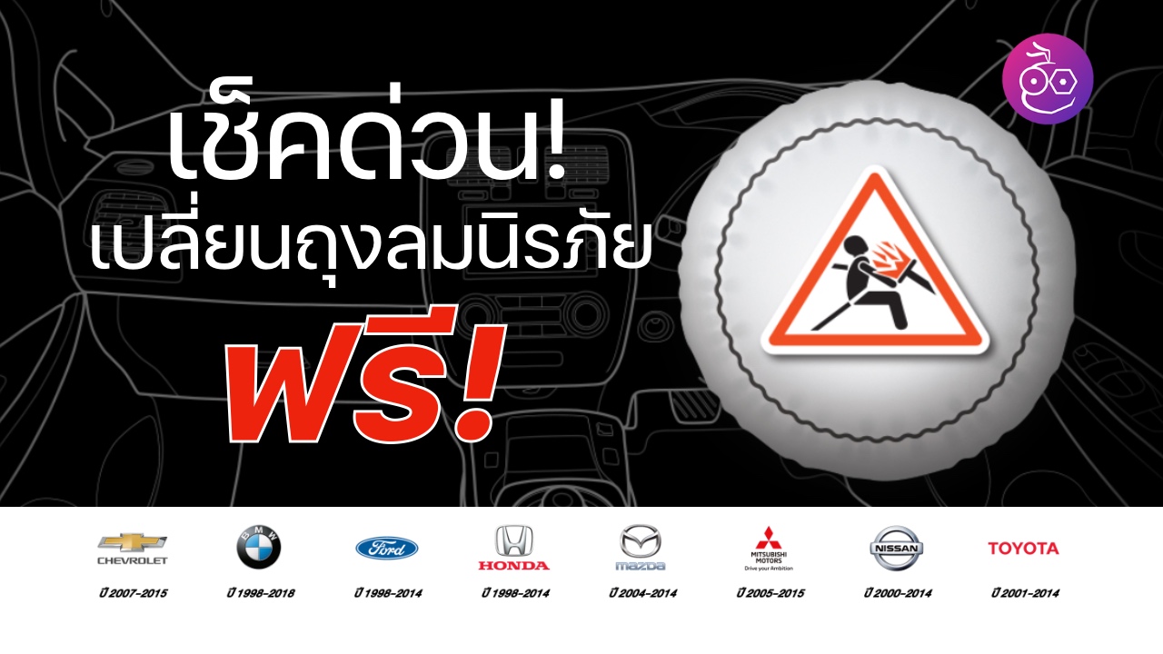 เช็คด่วน! รถยนต์ที่ต้องเปลี่ยนถุงลมนิรภัย ฟรี!