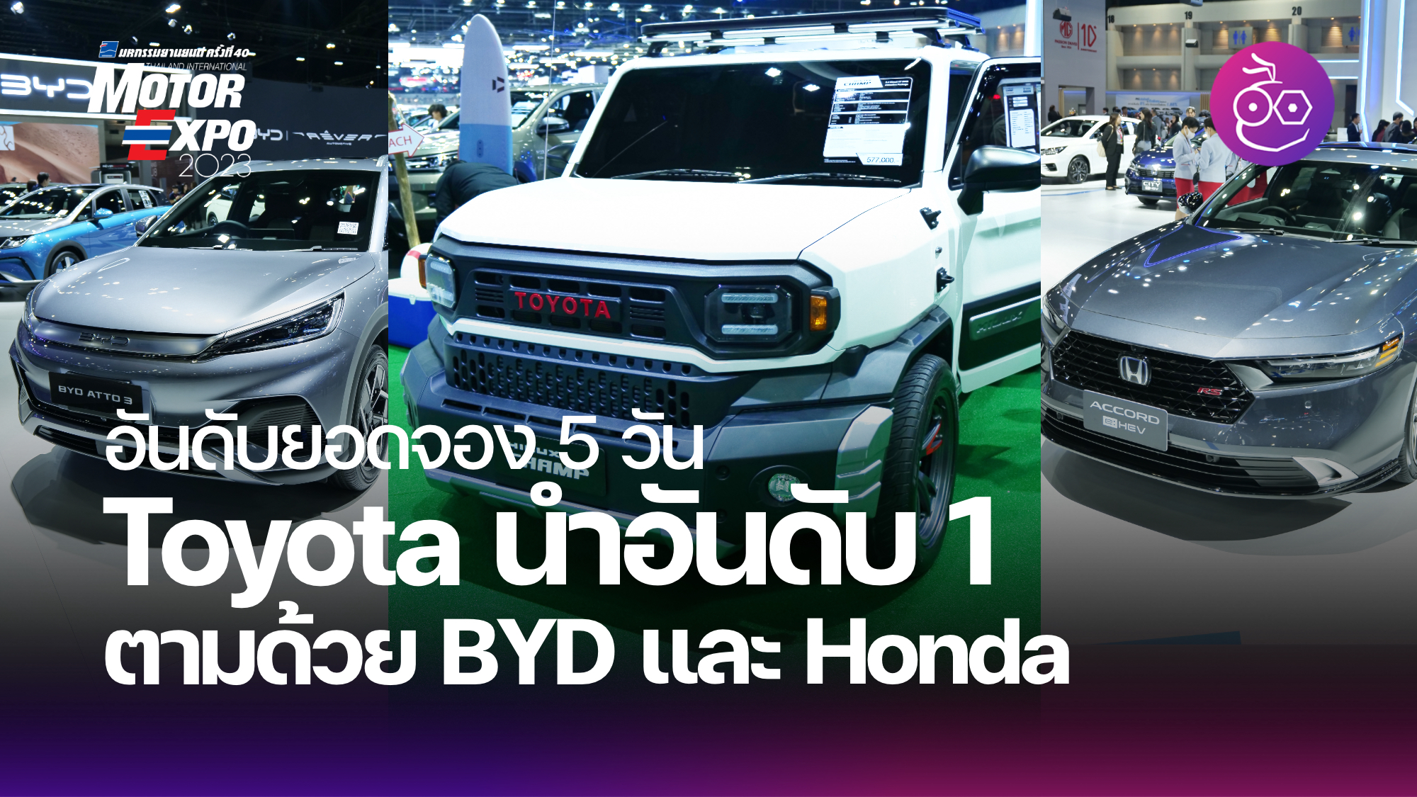 Thailand Motor Expo 2023 ยอดจอง Toyota เป็นอันดับ 1 ตามด้วย BYD และ Honda หลังผ่านไป 5 วัน (29 พ.ย.-3 ธ.ค.)