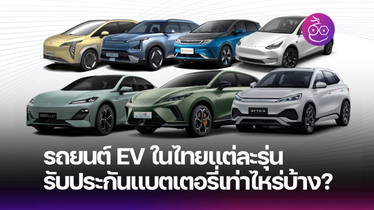 รถยนต์ไฟฟ้า (EV) ในไทยแต่ละรุ่น ประกันแบตเตอรี่กี่ปีหรือระยะทางเท่าไหร่
