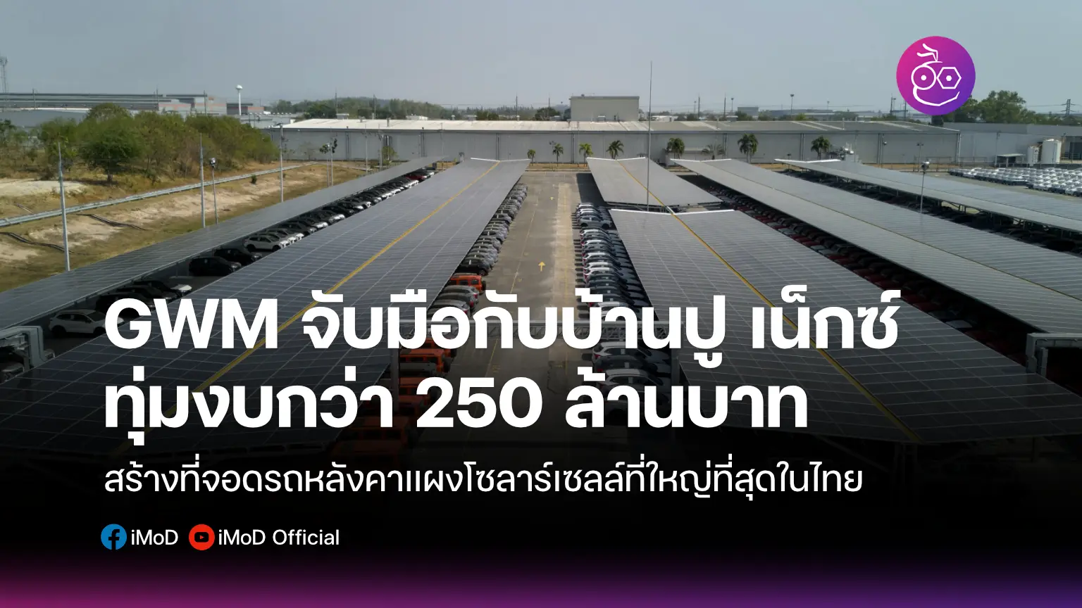 GWM ทุ่มงบกว่า 250 ล้านบาท ลงทุนใน GWM Sunergy Space หลังคาลานจอดรถจากแผงโซลาร์เซลล์ที่ใหญ่ที่สุดในไทย พร้อมติดตั้งโซลูชันพลังงานสะอาดจากบ้านปู เน็กซ์