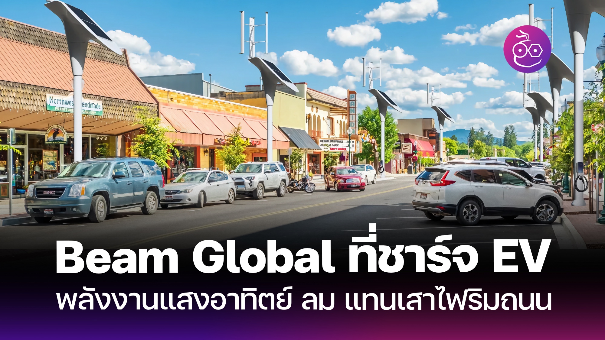 BeamSpot เสาชาร์จรถ EV พลังงานแสงอาทิตย์ ลม แทนเสาไฟ
