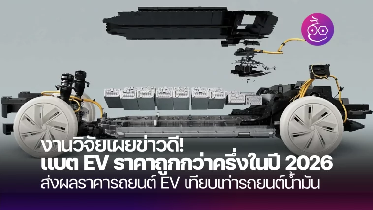 งานวิจัยเผย แบตเตอรี่รถยนต์ EV ในปี 2026 มีราคาถูกลงกว่าครึ่งจากปี 2023 อาจส่งผลให้ราคารถยนต์ EV เทียบเท่ากับรถยนต์น้ำมัน