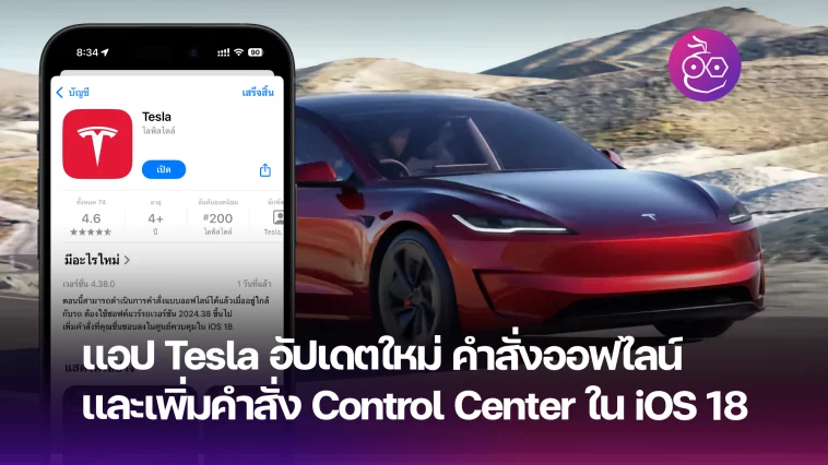 Tesla อัปเดตแอปเวอร์ชันใหม่ ใช้คำสั่งแบบออฟไลน์ และเพิ่มคำสั่งใน Control Center บน iPhone ใน iOS 18 ได้แล้ว