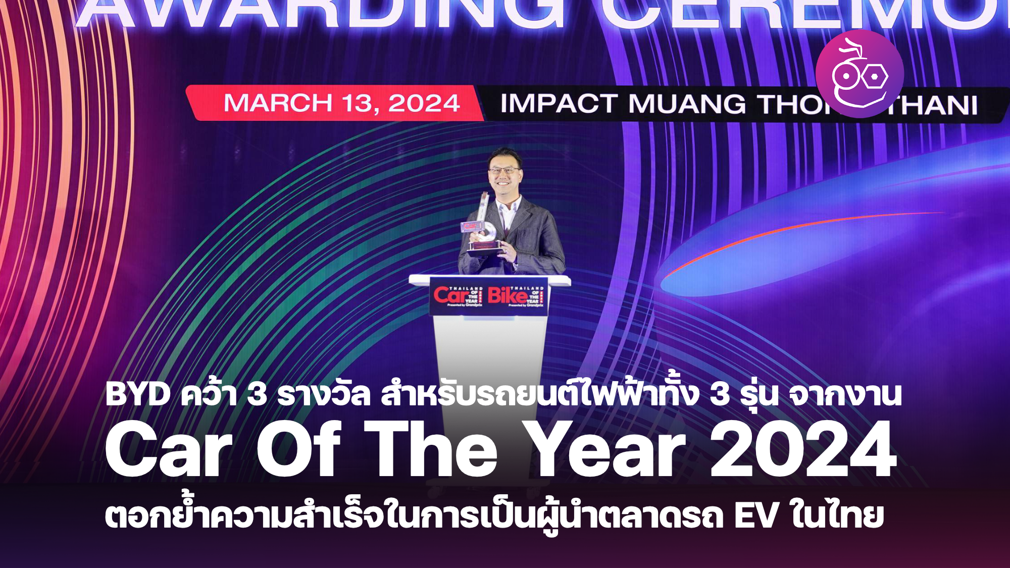 BYD คว้า 3 รางวัลจากเวที CAR OF THE YEAR 2024 ตอกย้ำความสำเร็จผู้นำตลาดอีวี เดินหน้าขับเคลื่อนประเทศไทยสู่ NEV Nation