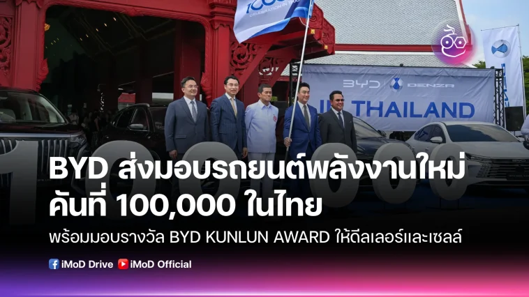 BYD ส่งมอบรถยนต์พลังงานใหม่เป็นคันที่ 100,000 ของประเทศไทย พร้อมมอบรางวัล BYD KUNLUN AWARD ให้ดีลเลอร์และเซลส์ ที่มีผลงานยอดเยี่ยม