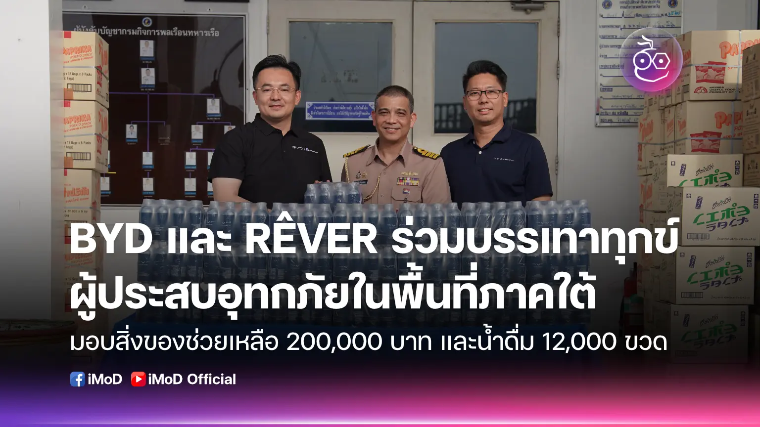 BYD ประเทศไทย และ RÊVER ร่วมบรรเทาทุกข์ผู้ประสบภัยน้ำท่วม มอบสิ่งของช่วยเหลือ 200,000 บาท พร้อมน้ำดื่ม 12,000 ขวด ผ่านกองทัพเรือ