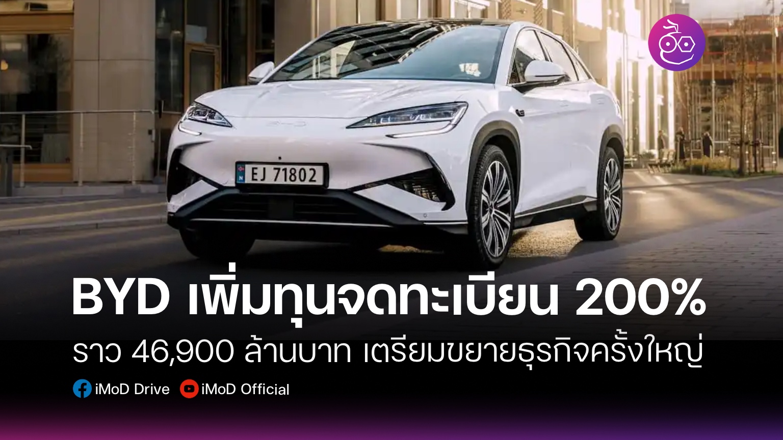 BYD เพิ่มทุนจดทะเบียนกว่า 200% ราว 46,900 ล้านบาท พร้อมเดินหน้าขยายธุรกิจครั้งใหญ่