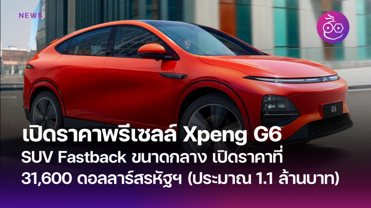 Xpeng G6 เปิดราคาพรีเซลล์ในประเทศจีน ราคา 31,600 ดอลลาร์สรหัฐฯ (ประมาณ 1.1 ล้านบาท)