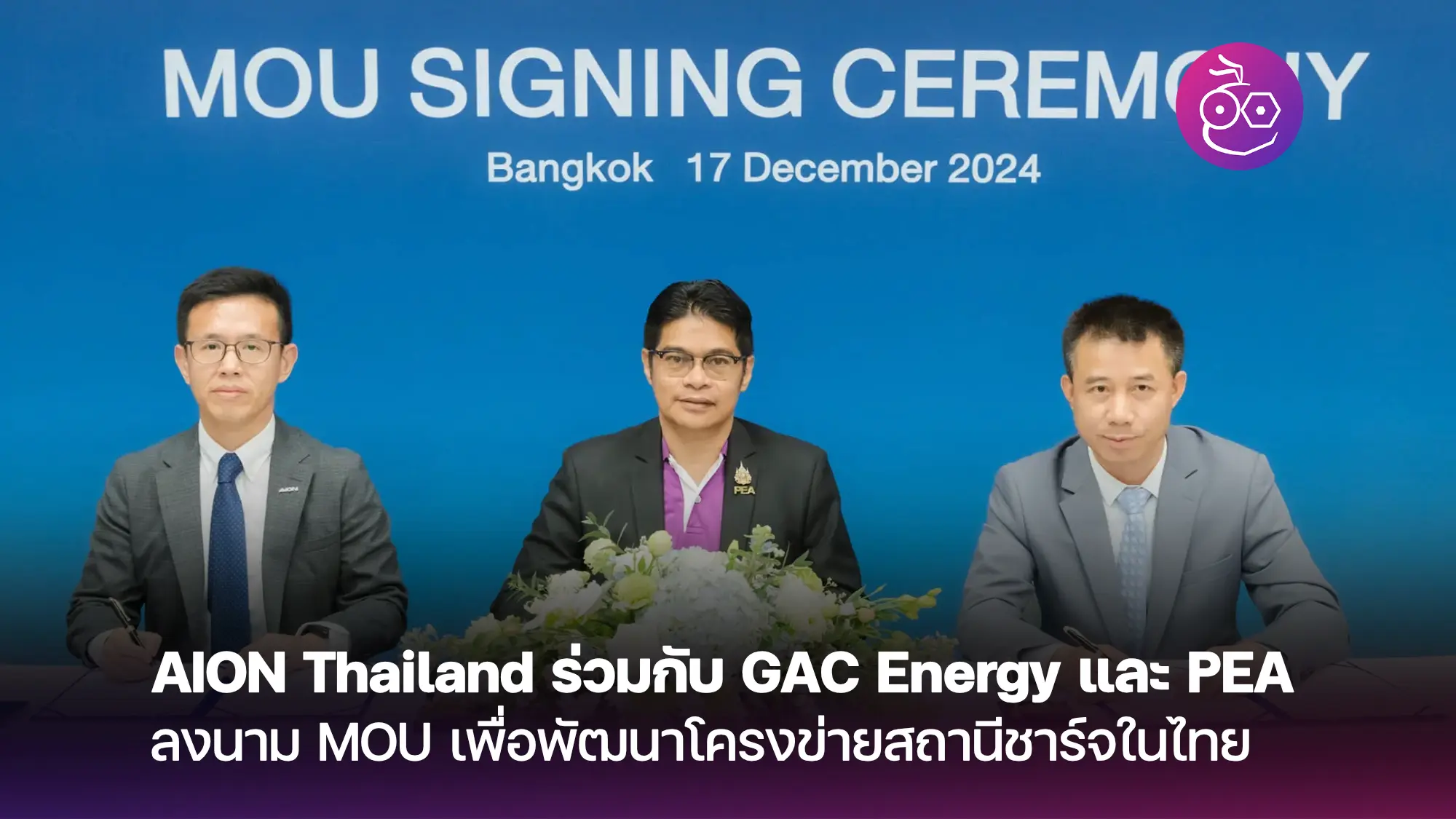 AION Thailand ร่วมกับ GAC Energy และ PEA ลงนาม MOU พัฒนาโครงข่ายสถานีชาร์จรถยนต์ไฟฟ้าในประเทศไทย