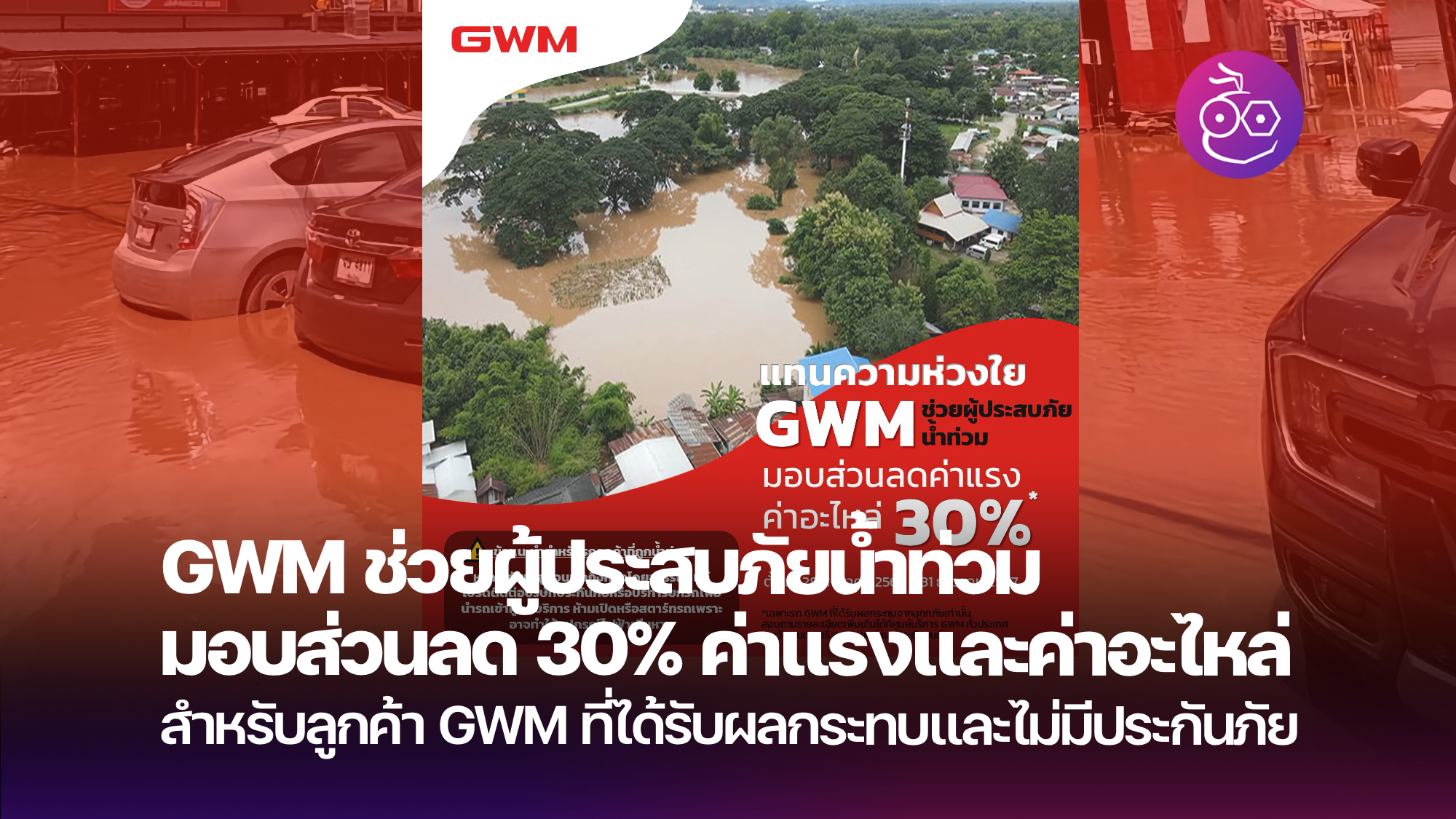 GWM ช่วยผู้ประสบภัยน้ำท่วม มอบส่วนลด 30% สำหรับค่าแรงและค่าอะไหล่ สำหรับลูกค้าไม่มีประกันภัยรถยนต์