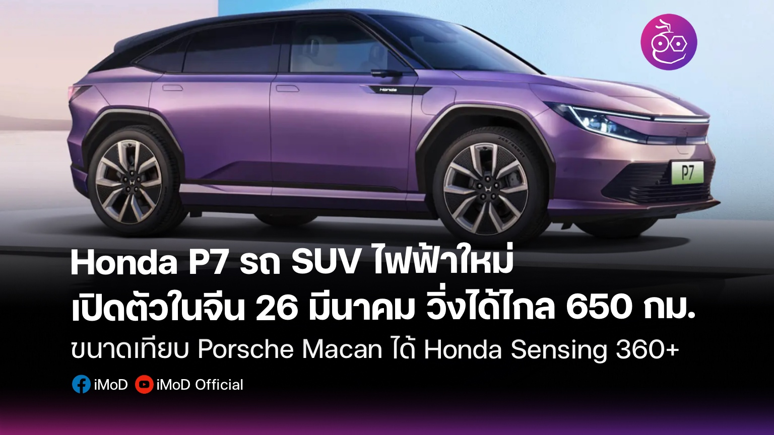 Honda P7 รถ SUV ไฟฟ้าใหม่ เปิดตัวในจีน 26 มีนาคม วิ่งได้ไกลสูงสุด 650 กม.
