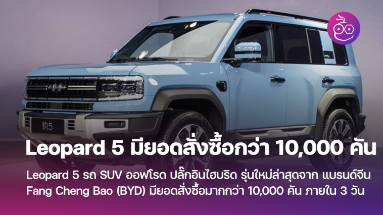 Fang Cheng Bao Leopard 5 จาก BYD ได้รับยอดคำสั่งซื้อมากกว่า 10,000 คัน ภายใน 3 วัน นับตั้งแต่เริ่มขายอย่างเป็นทางการ เมื่อวันพฤหัสบดีที่ผ่านมา