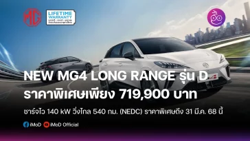 1.4k ดู MG เสริมทัพ NEW MG4 LONG RANGE รุ่น D ในราคาพิเศษเพียง 719,900 บาท ชาร์จไว และวิ่งได้ไกลมากยิ่งขึ้น