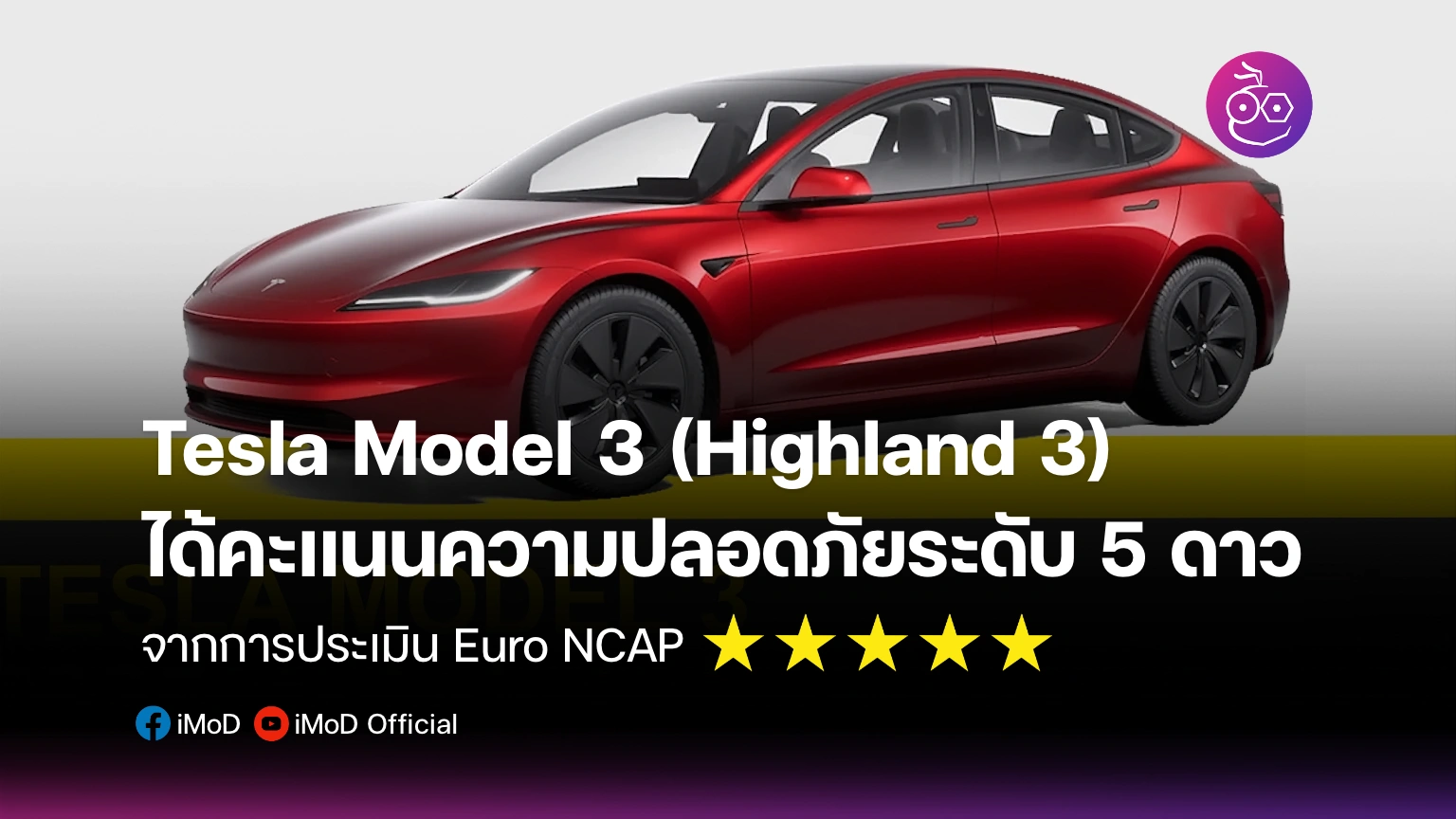 Tesla Model 3 (Highland) ได้คะแนนความปลอดภัยระดับ 5 ดาวจาก Euro NCAP