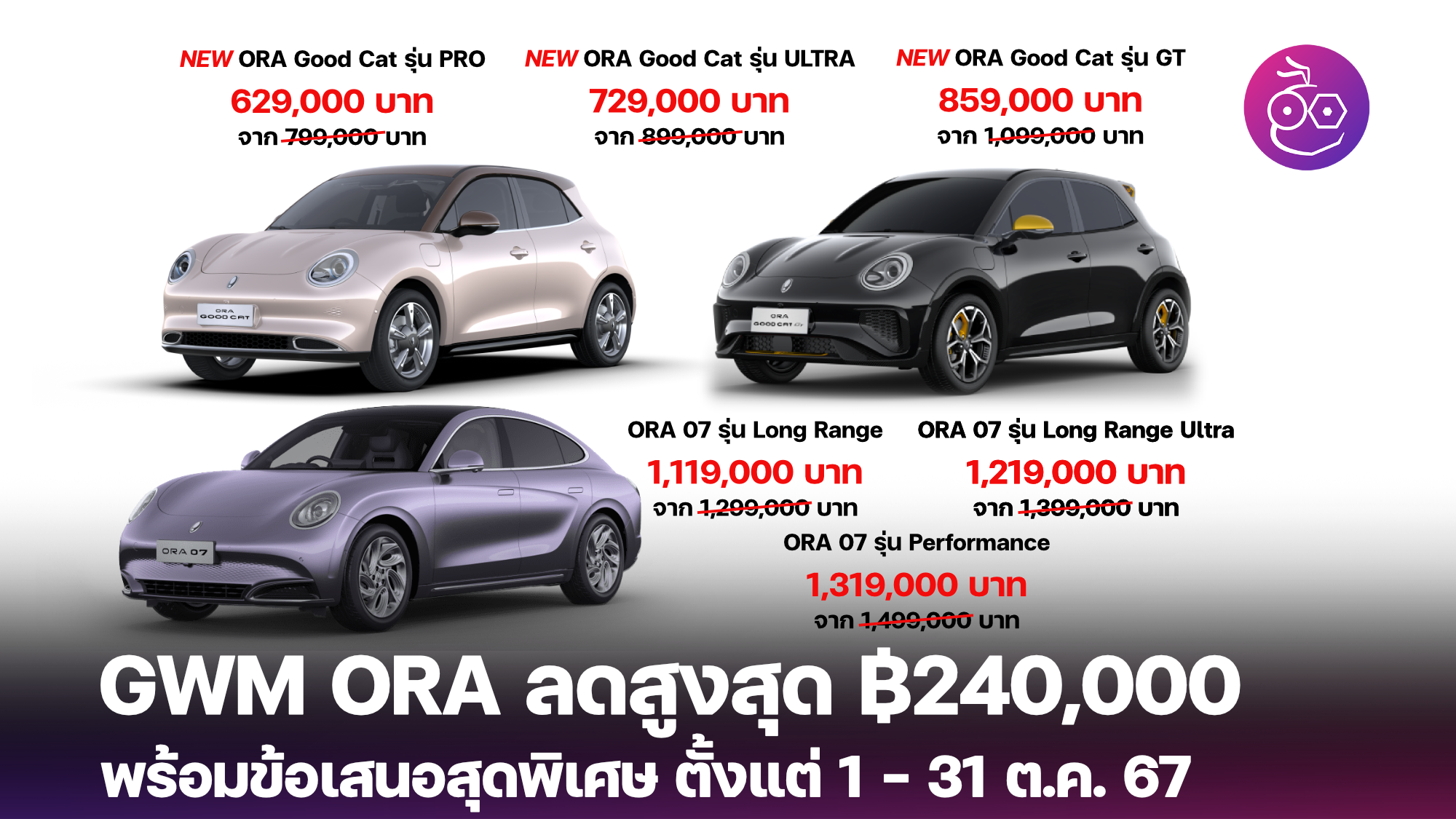 GWM จัดแคมเปญ THE GREAT DEAL อย่างต่อเนื่อง พร้อมข้อเสนอสุดพิเศษของ GWM ORA ส่วนลดสูงสุด 240,000 บาท ตลอดเดือนตุลาคมนี้