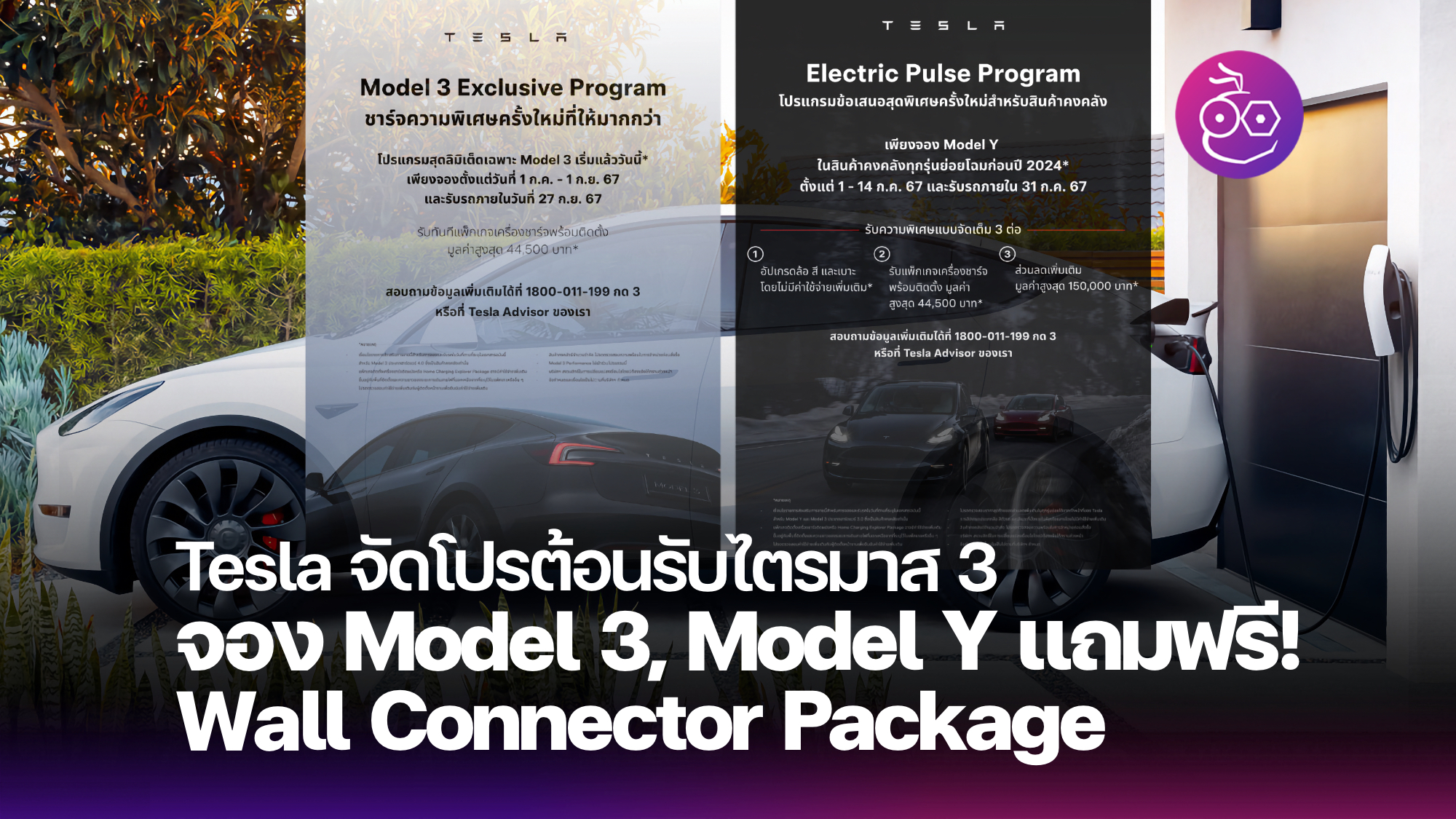 Tesla ต้อนรับไตรมาส 3 จอง Model 3, Model Y แถมฟรี! แพ็กเกจ Wall Connector พร้อมดอกเบี้ย 2.49% และสิทธิพิเศษอื่น ๆ