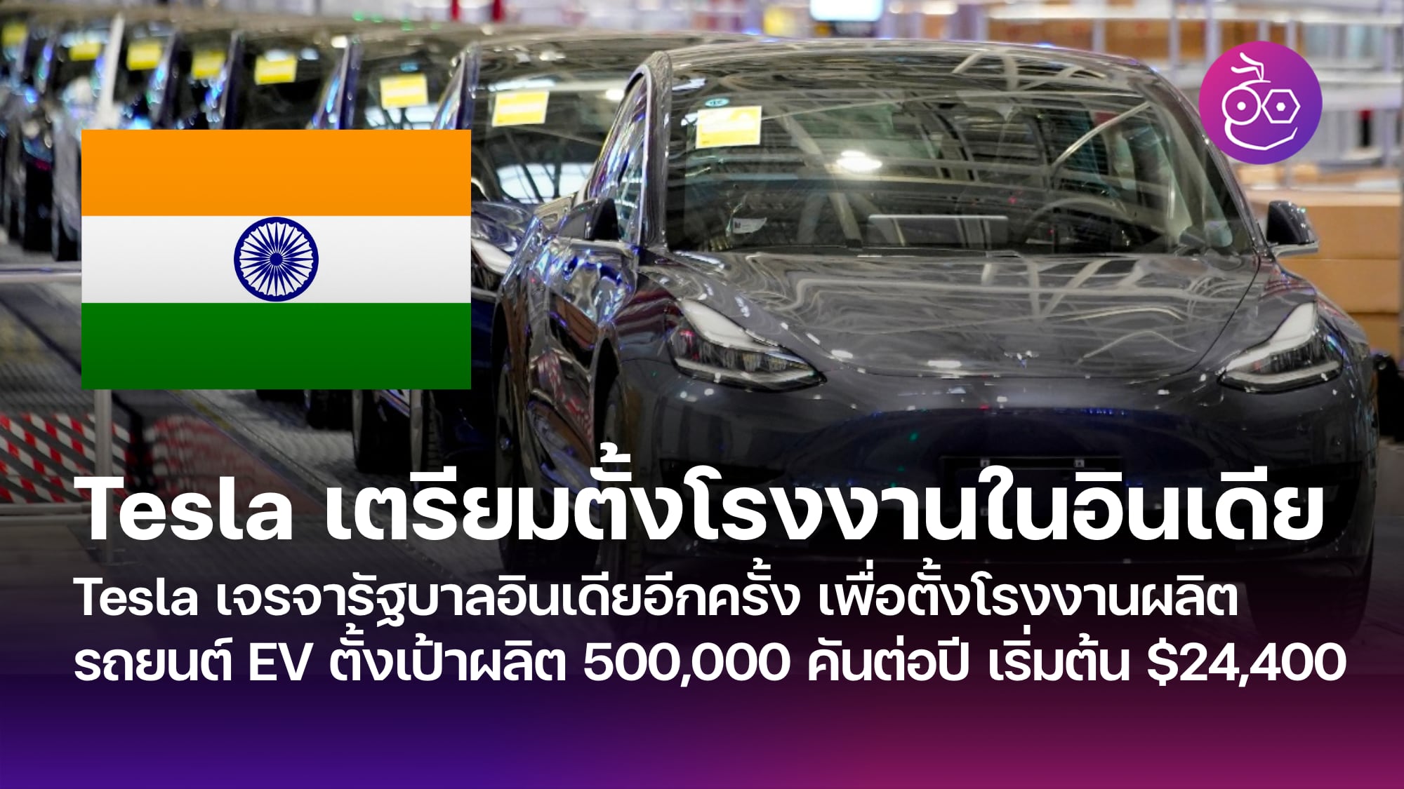 Tesla เตรียมตั้งโรงงานผลิตรถยนต์ไฟฟ้า (EV) ในอินเดีย ราคารถเริ่มต้น $24,400 ตั้งเป้าผลิต 500,000 คันต่อปี