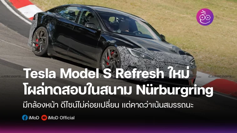 Tesla Model S รุ่นปรับโฉมใหม่ โผล่ที่สนาม Nürburgring มีกล้องหน้า ดีไซน์เปลี่ยนไม่มาก คาดว่าเน้นสมรรถนะ