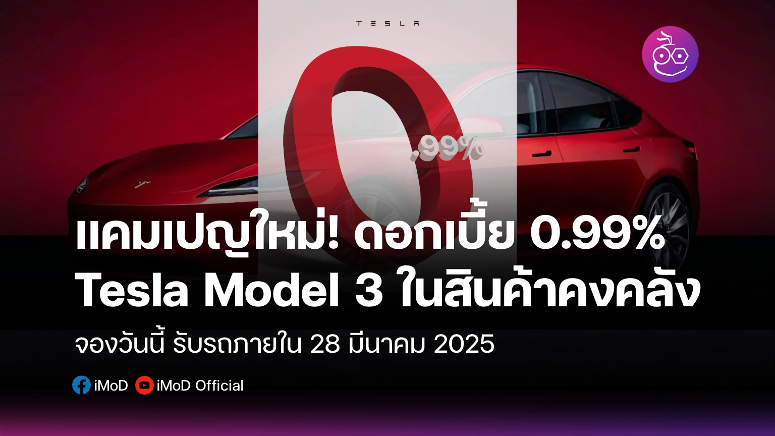 พิเศษดอกเบี้ย 0.99% เมื่อจอง Tesla Model 3 ในสินค้าคงคลัง รับรถภายใน 28 มี.ค. 2025