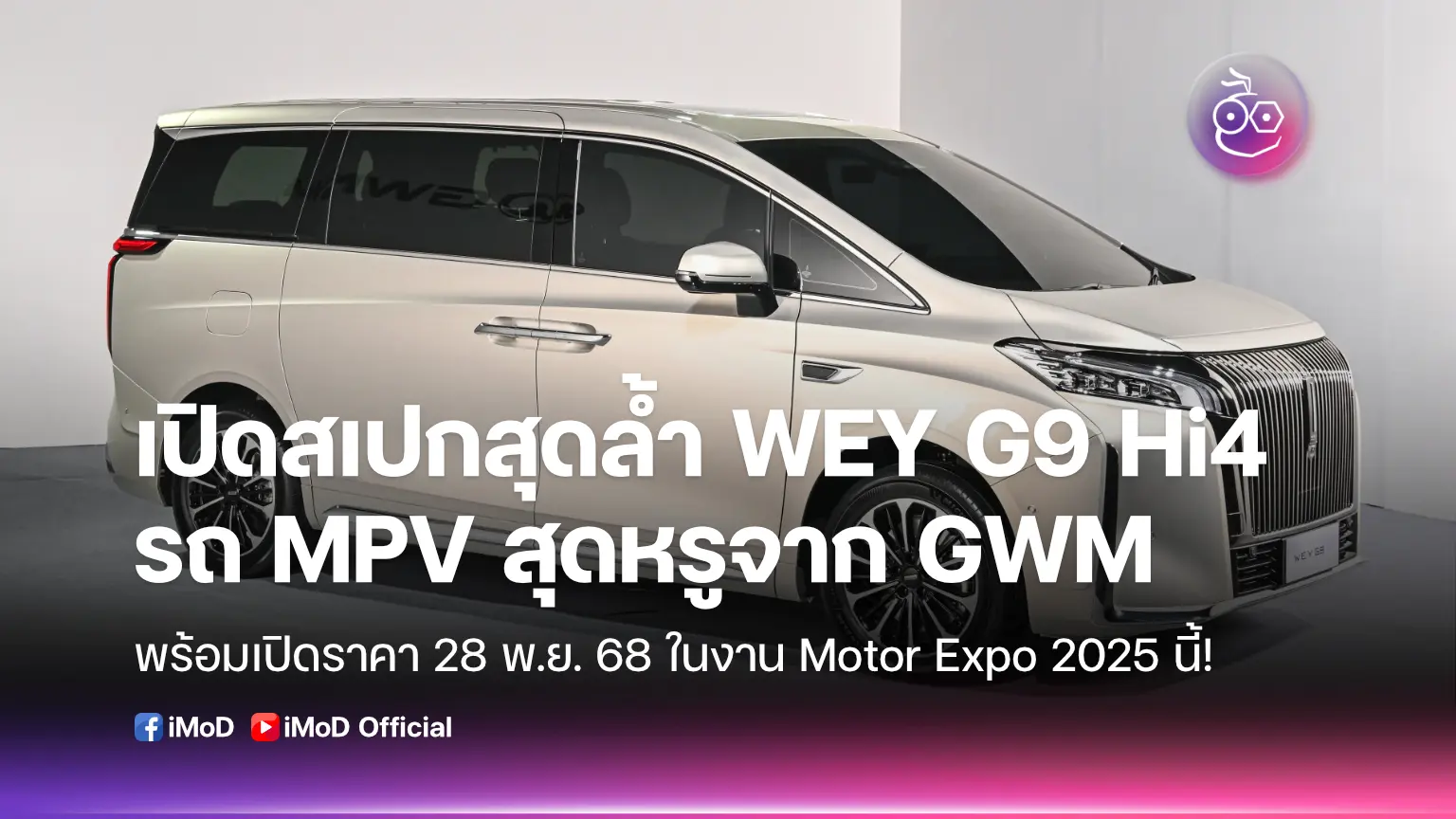 GWM เปิดสเปกสุดล้ำของ “WEY G9” New-Generation Luxury MPV ยกระดับสู่ความล้ำสมัย ด้วย Hi4 ระบบขับเคลื่อนไฮบริดสี่ล้ออัจฉริยะครั้งแรกของไทย พร้อมให้สัมผัสคันจริง วันที่ 28 พ.ย. นี้ ที่งาน Motor Expo 2025