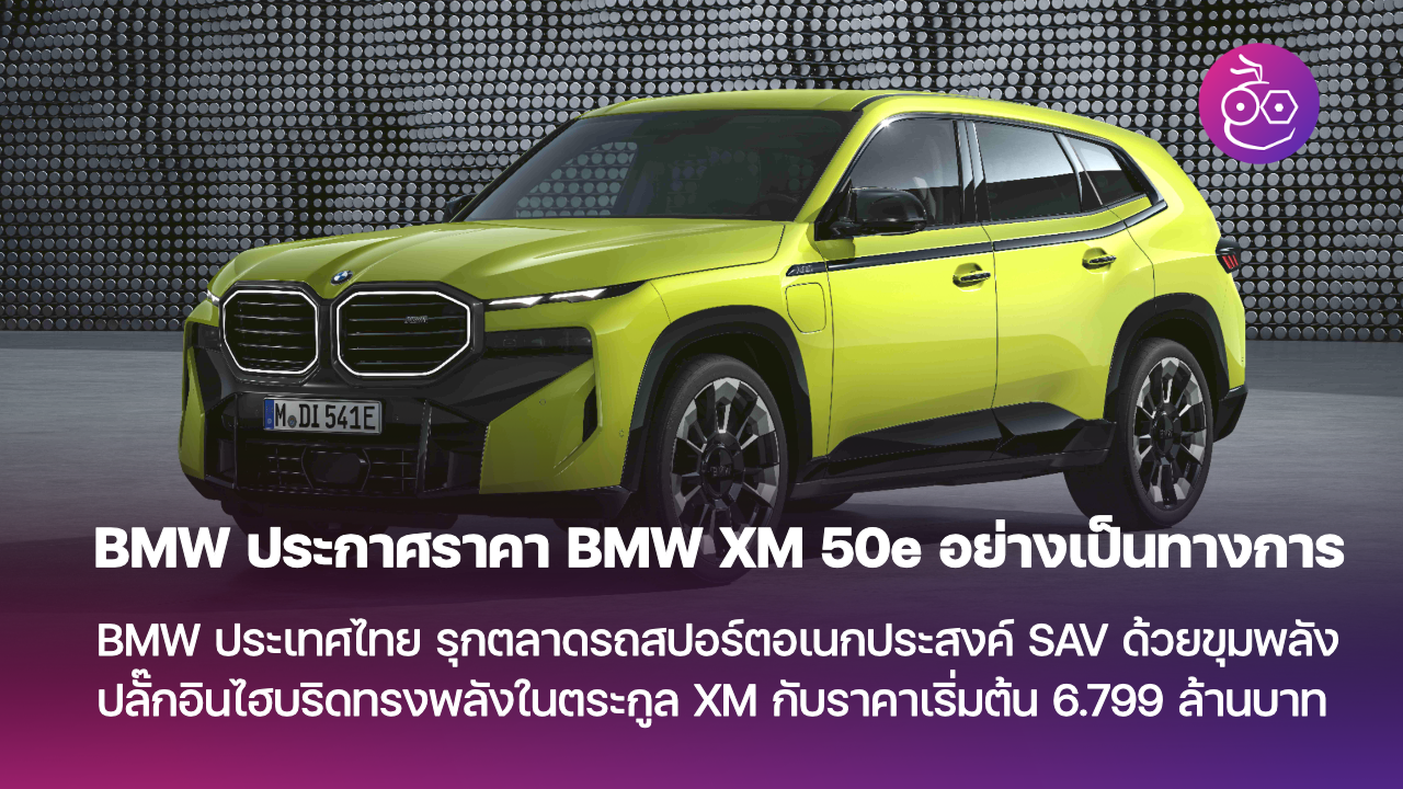 BMW ประเทศไทย ประกาศราคา BMW XM 50e อย่างเป็นทางการ รุกตลาดรถสปอร์ตอเนกประสงค์ SAV ปลั๊กอินไฮบริดทรงพลังในตระกูล XM ในราคาเริ่มต้น 6,799,000 บาท