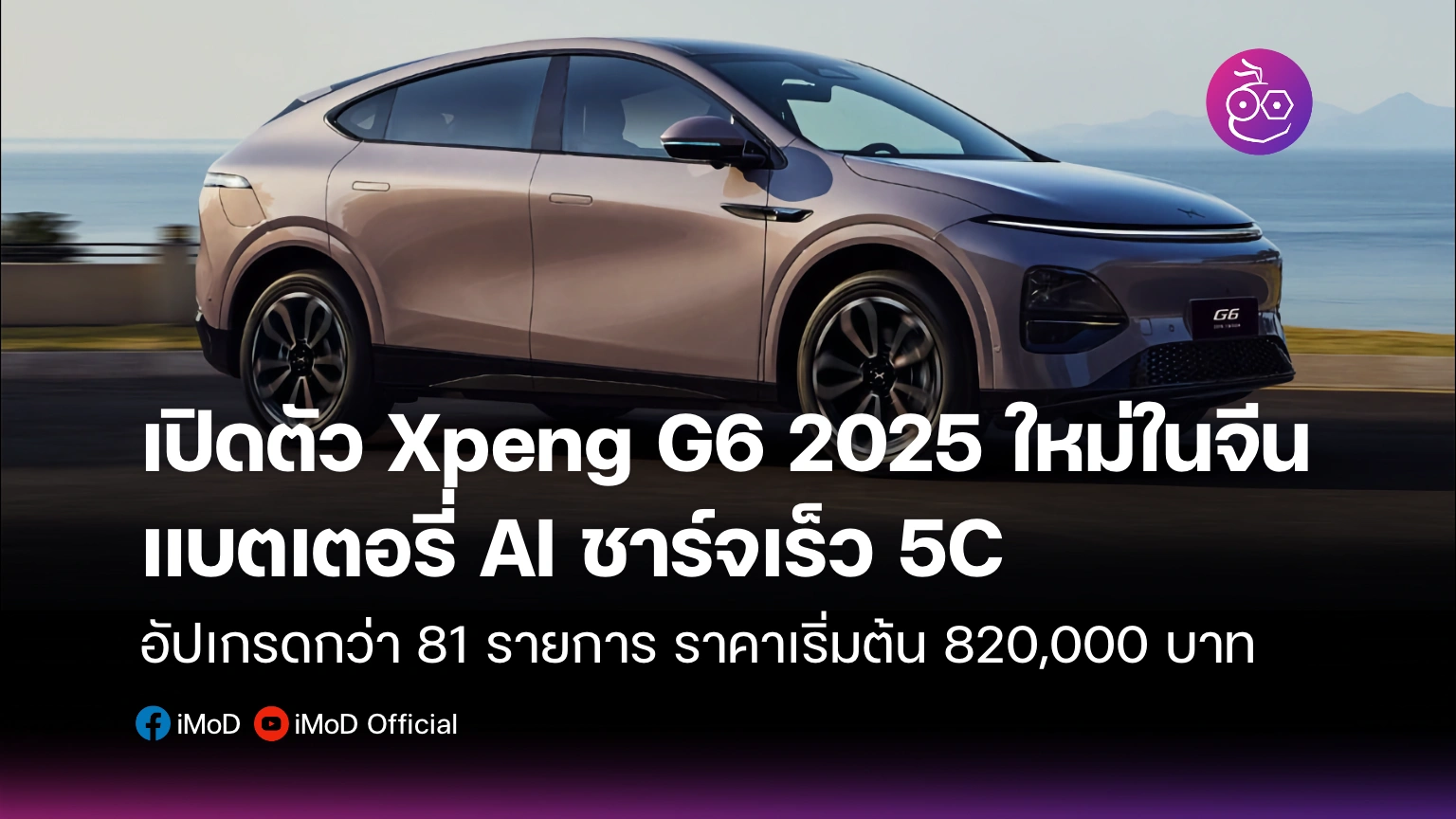 Xpeng G6 รุ่นปี 2025 เปิดตัวในจีนแล้ว รถ SUV ไฟฟ้า พร้อมระบบชาร์จเร็ว 5C และแบตเตอรี่ AI ราคาเริ่มต้น 820,000 บาท