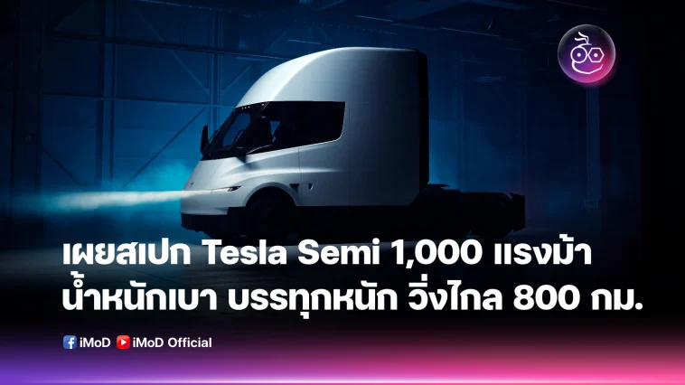 เปิดสเปก Tesla Semi 1,000 แรงม้า น้ำหนักเบา บรรทุกหนัก วิ่งไกล 800 กม.