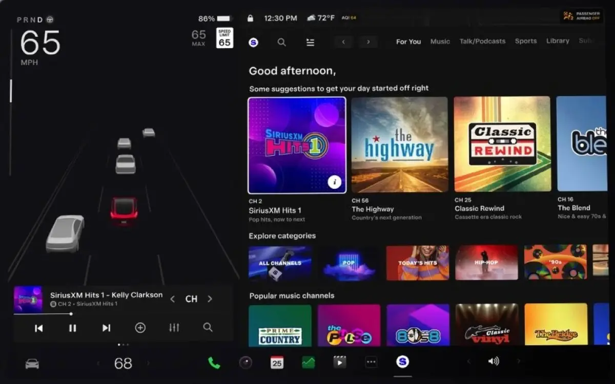 บริการ SiriusXM ที่เป็นบริการสตรีมมิ่งวิทยุผ่านดาวเทียมจะสามารถใช้งานได้ในรถยนต์ Tesla โดยพร้อมให้บริการใน Model 3, Model Y และ Cybertruck ส่วน Model S และ Model X มีฮาร์ดแวร์ดาวเทียมที่สามารถใช้งานได้อยู่แล้ว (บริการนี้มีเฉพาะสหรัฐอเมริกาและแคนาดา)