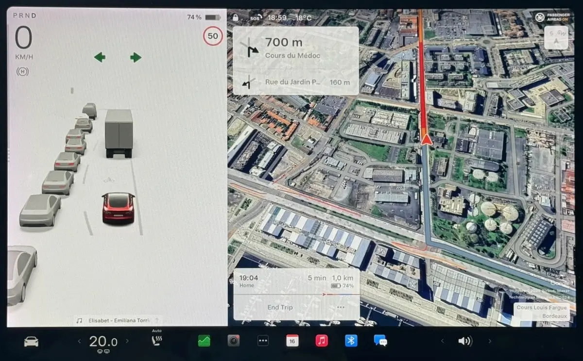 Tesla เปิดให้ผู้ใช้ทุกคนได้ใช้งานฟีเจอร์ Live traffic การแสดงจราจรแบบเรียลไทม์ โดยมีฟีเจอร์ ภาพรวมการจราจน ที่แสดงภาพรวมการเดินทางตามเส้นทางที่กำลังเดินทางไป