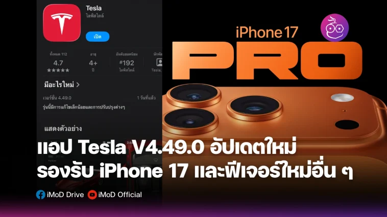 Tesla เวอร์ชัน 4.49.0 ปล่อยอัปเดตใน App Store แล้ว สำหรับใครที่จอง iPhone 17 ใหม่ไว้ ก็อัปเดตแอปไว้รอได้เลย