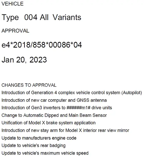 แม้ยังไม่ได้ประกาศถึง HW4/AP4 อย่างเป็นทางการ แต่ทางผู้ผลิตรถยนต์ได้รับการอนุมัติให้ขายฮาร์ดแวร์ใหม่ในยุโรปทั้งรุ่น Model S และรุ่น Model X อีกทั้งมีการระบุถึงระบบ Autopilot Generation ที่ 4 ไว้ในรายการอีกด้วย โดยหน่วยงานยานยนต์ของเนเธอร์แลนด์ “RDW” ลงวันที่ 20 มกราคม 2023