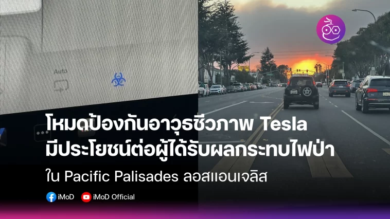 จากเหตุไฟป่า Pacific Palisades ที่รุนแรง ส่งผลให้เกิดความเสียหายและทำให้ผู้คนต้องอพยพจำนวนมาก มีผู้ใช้รถยนต์ Tesla Model Y ให้เครดิตกับโหมดป้องกันอาวุธชีวภาพของ Tesla ที่ช่วยป้องกันควันที่เกิดจากไฟฟ้าได้