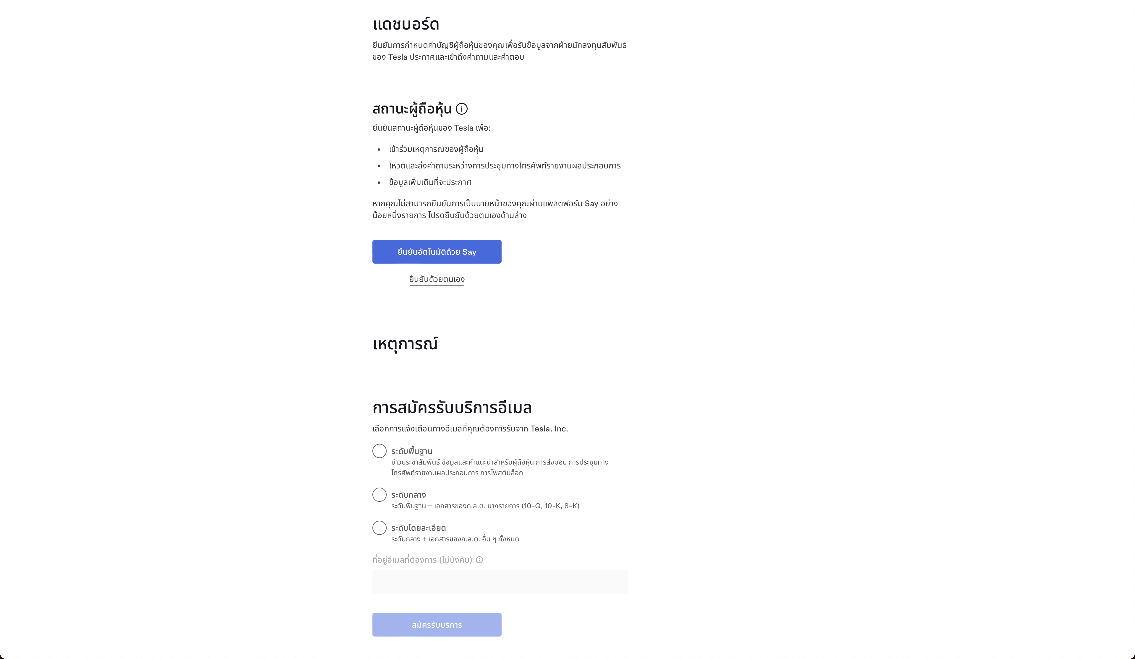 หากผู้ถือหุ้นอยู่ในสหรัฐอเมริกา สามารถใช้แพลตฟอร์ม Say เพื่อตรวจสอบสถานะผู้ถือหุ้นได้โดยอัตโนมัติ  ส่วนผู้ถือหุ้นที่อยู่นอกสหรัฐอเมริกา เว้นแต่จะซื้อขายกับธนาคารอเมริกา และจะต้องให้ใบแจ้งยอดที่อัปเดตแสดงสถานะผู้ถือหุ้น สำหรับเดือนกันยายน 2024 โดยแพลตฟอร์ม Say จะใช้เวลาประมาณ 3-5 วันทำการ ในการตรวจสอบใบแจ้งยอด ดังนั้นอย่าลืมลงทะเบียนตั้งแต่เนิ่น ๆ