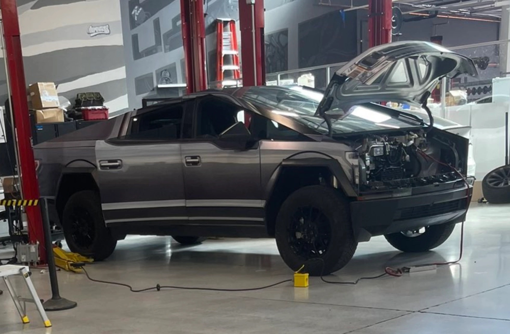 Cybertruck wrapped like an ICE F150 with its hood up. 🥸 pic.twitter.com/MQGXU0GmLD