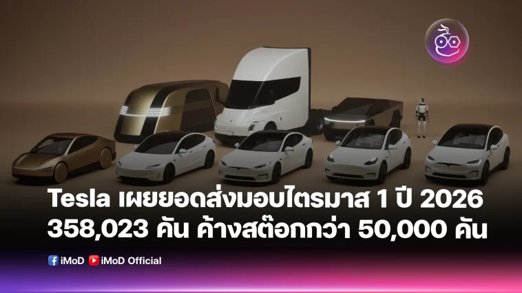 Tesla เผยยอดส่งมอบไตรมาส 1 ปี 2026 ที่ 358,000 คัน เหลือรถค้างสต็อกกว่า 50,000 คัน
