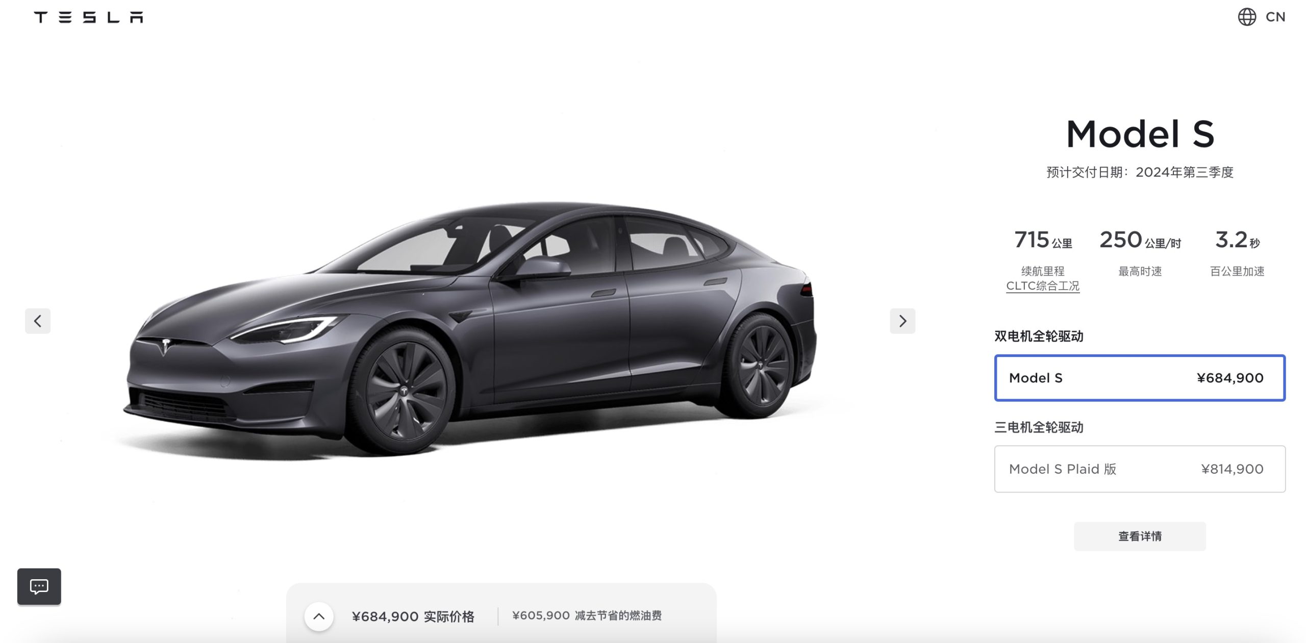 • Model S ราคาเริ่มต้นลดลงเหลือ 684,900 หยวน (ประมาณ 3.55 ล้านบาท)