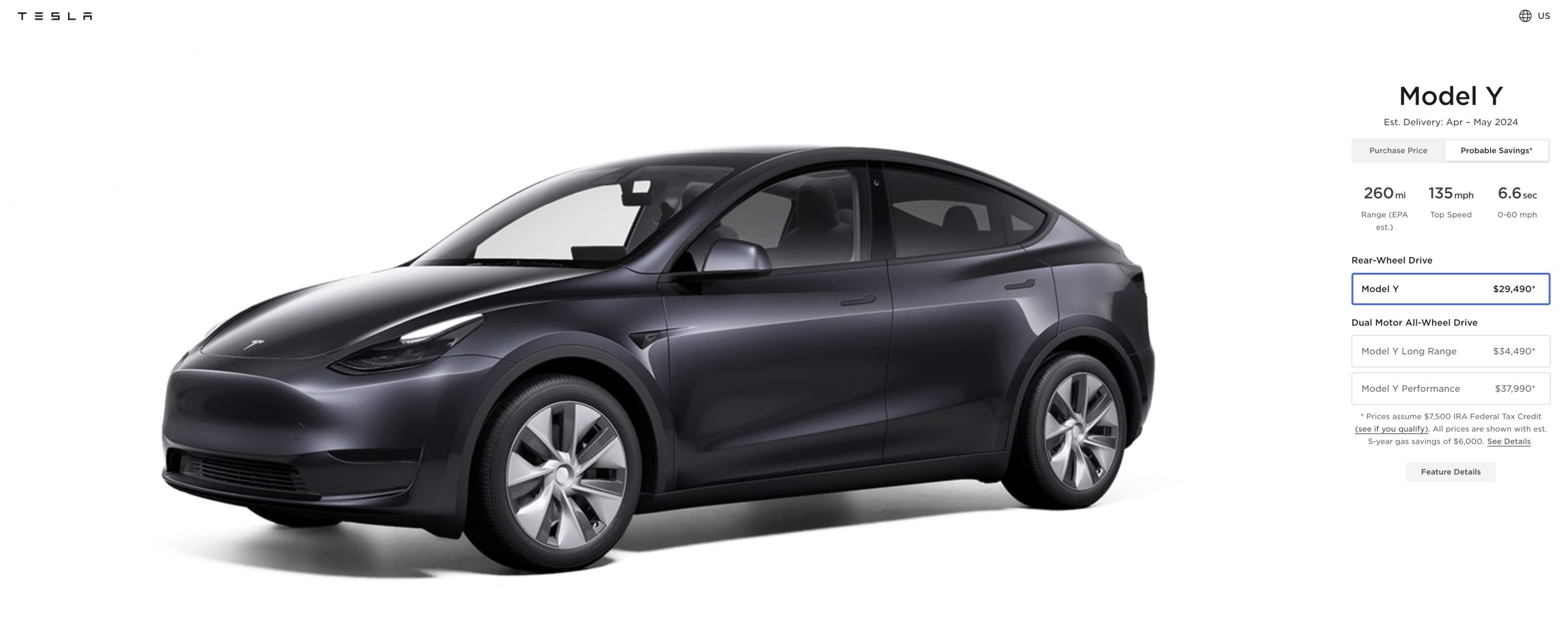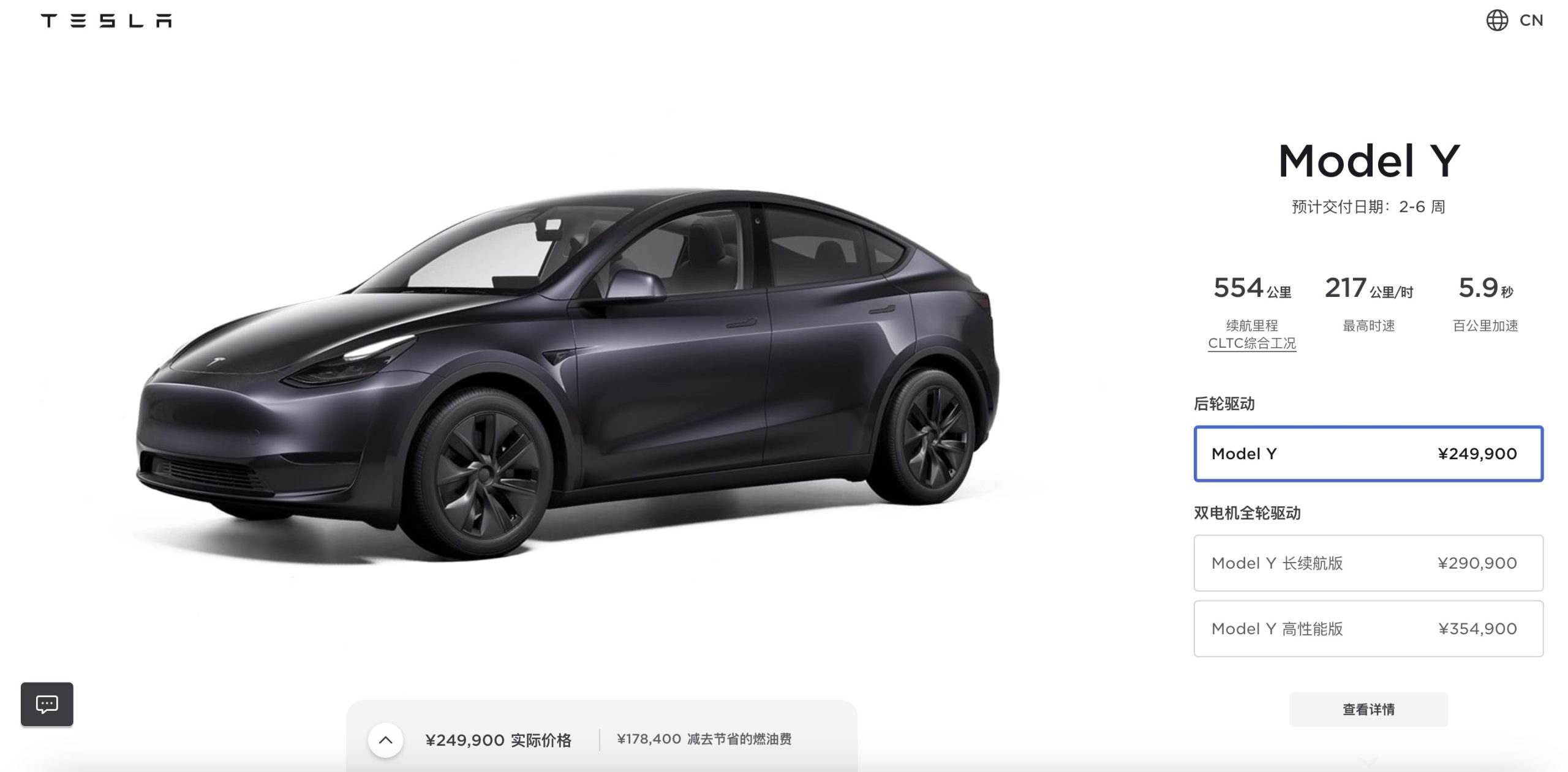 • Model Y ราคาเริ่มต้นลดลงเหลือ 249,900 หยวน (ประมาณ 1.3 ล้านบาท)