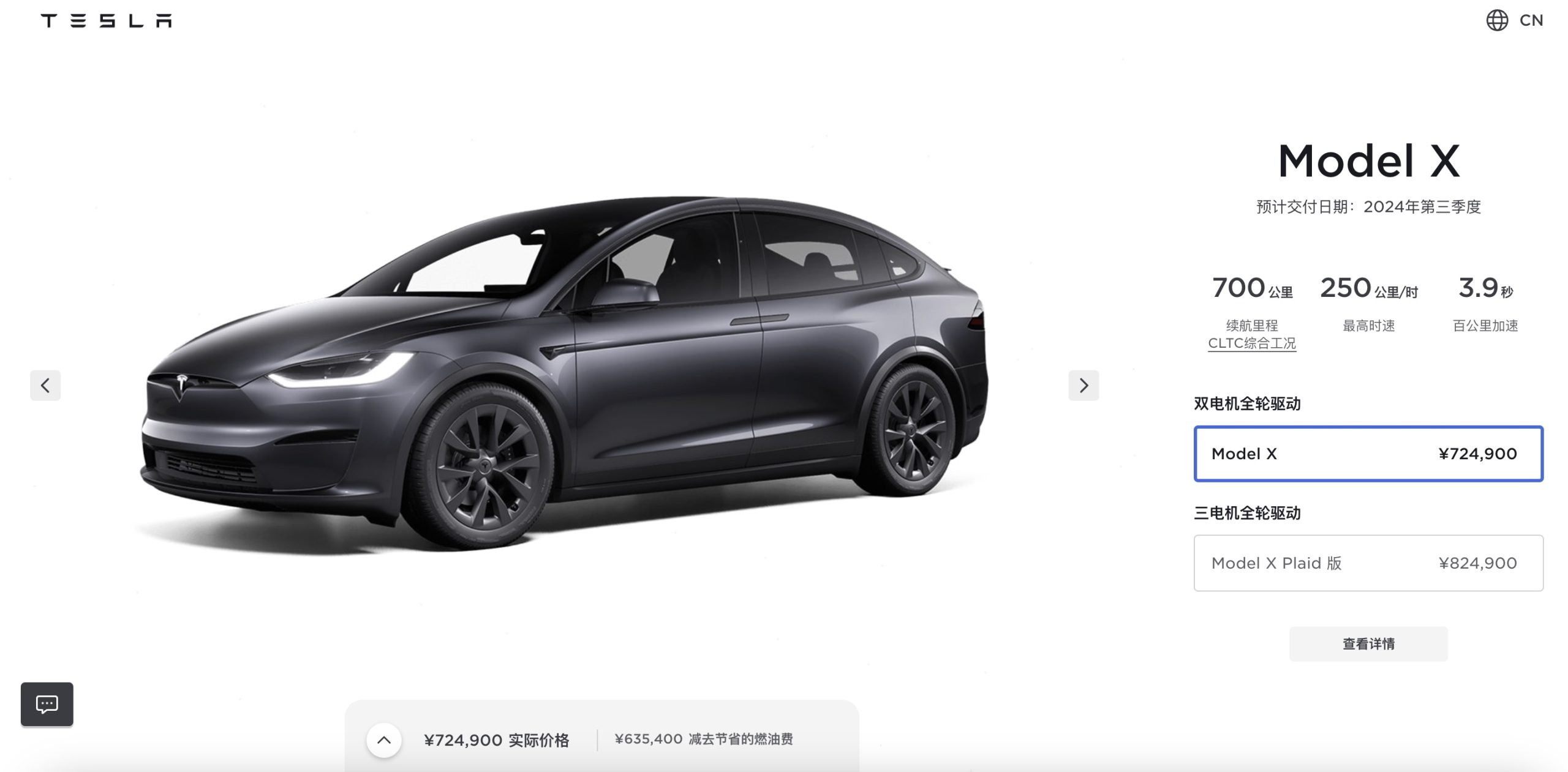 • Model X ราคาเริ่มต้นลดลงเหลือ 724,900 หยวน (ประมาณ 3.76 ล้านบาท)