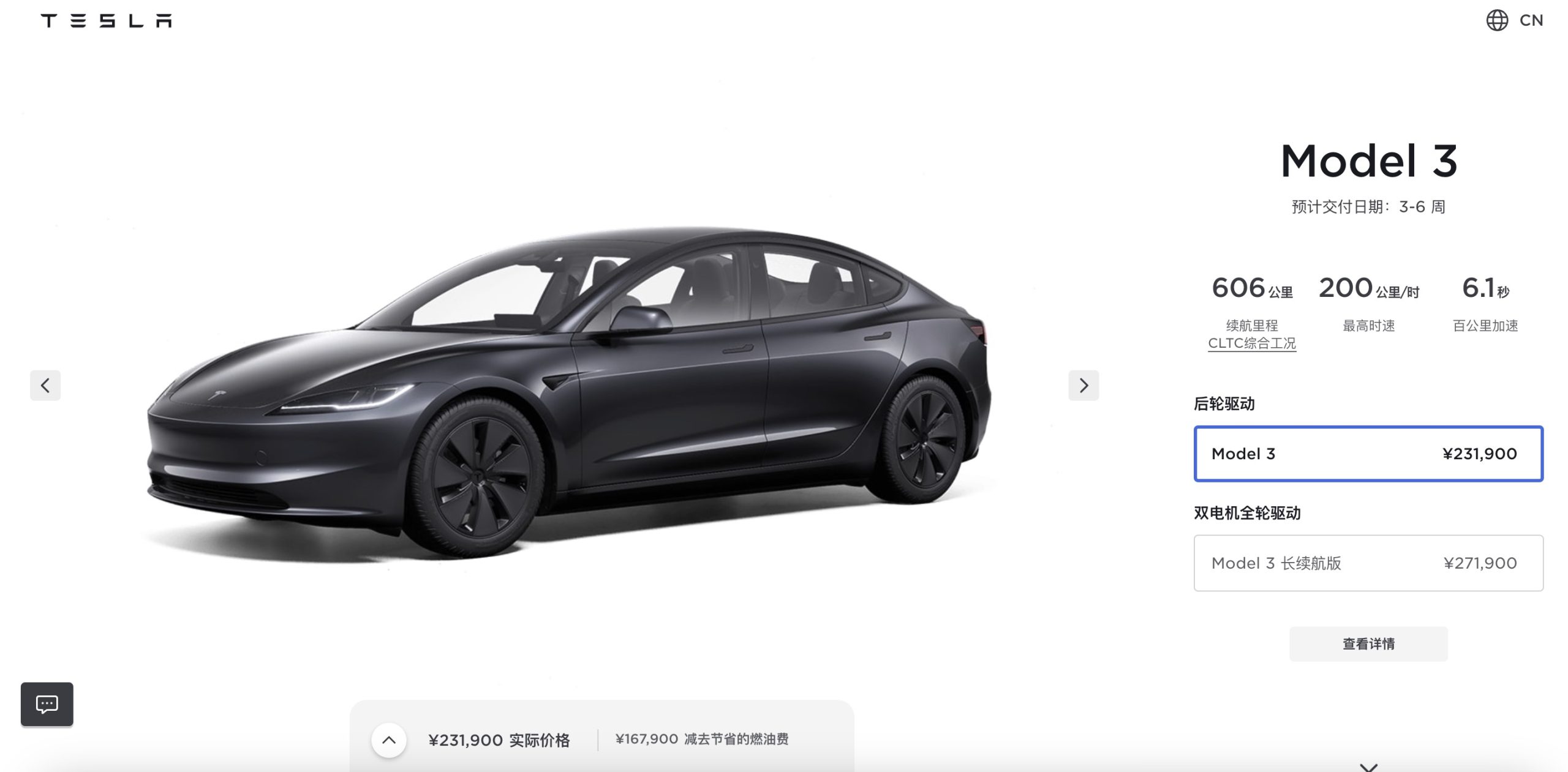 Tesla ประเทศจีนได้ปรับลดราคารถยนต์ไฟฟ้าทุกรุ่น โดย Model 3 Refreshed (Highland) ปรับลดลง 14,000 หยวน (ประมาณ 72,000 บาท) ทำให้มีราคาเริ่มต้น 231,900 หยวน (ประมาณ 1.2 ล้านบาท)
